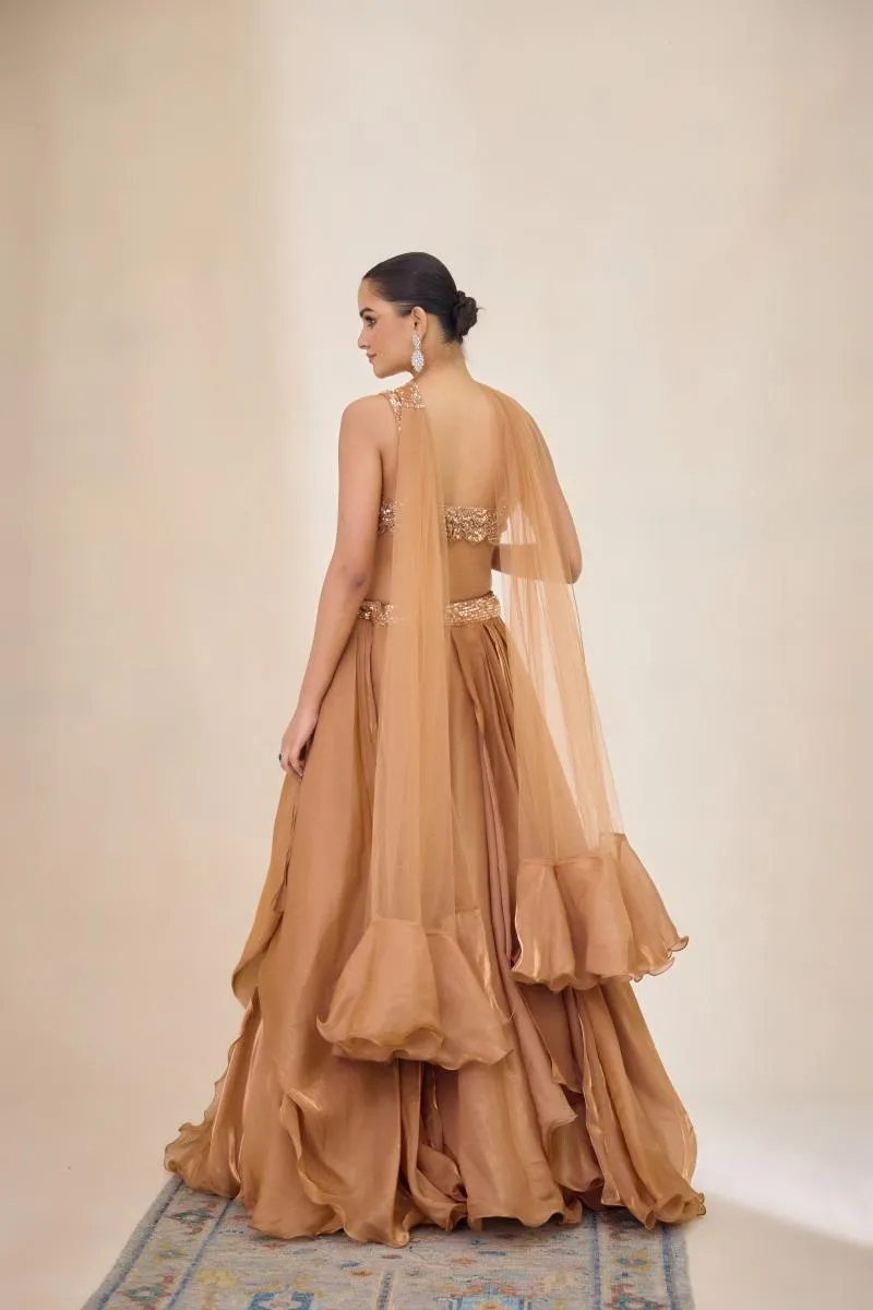 Professional dry-cleaning only. The garment should be kept in Soft Muslin fabric. Do not spray perfume directly on garment. Avoid mothball use. Kindly keep the garment in moderate climate as same of the embroidery material tends to react with the weather change.