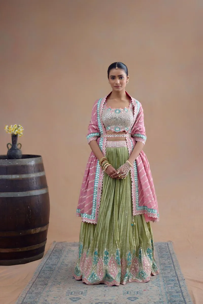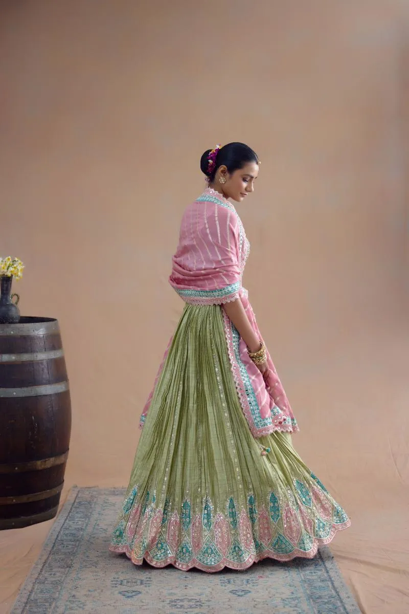 Professional dry-cleaning only. The garment should be kept in Soft Muslin fabric. Do not spray perfume directly on garment. Avoid mothball use. Kindly keep the garment in moderate climate as same of the embroidery material tends to react with the weather change.