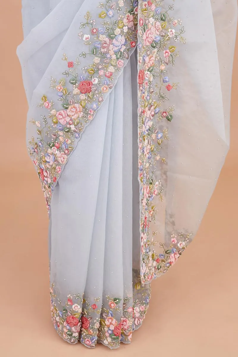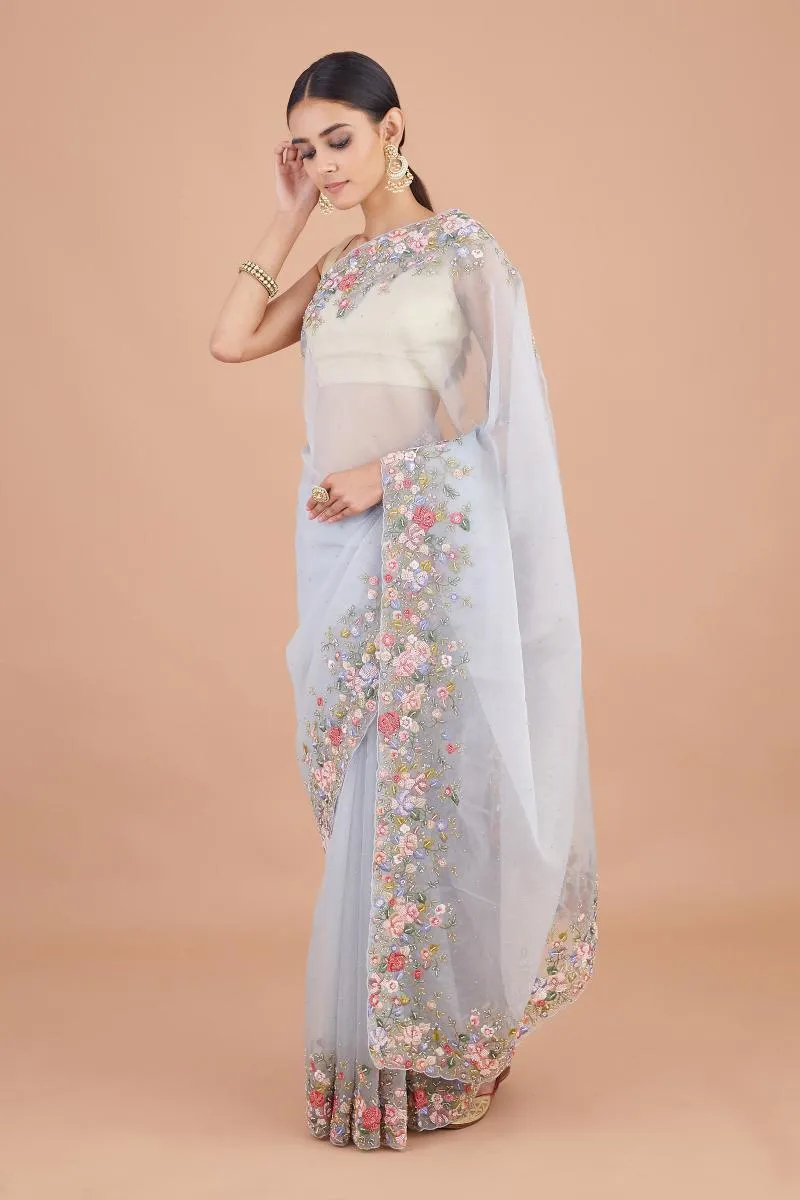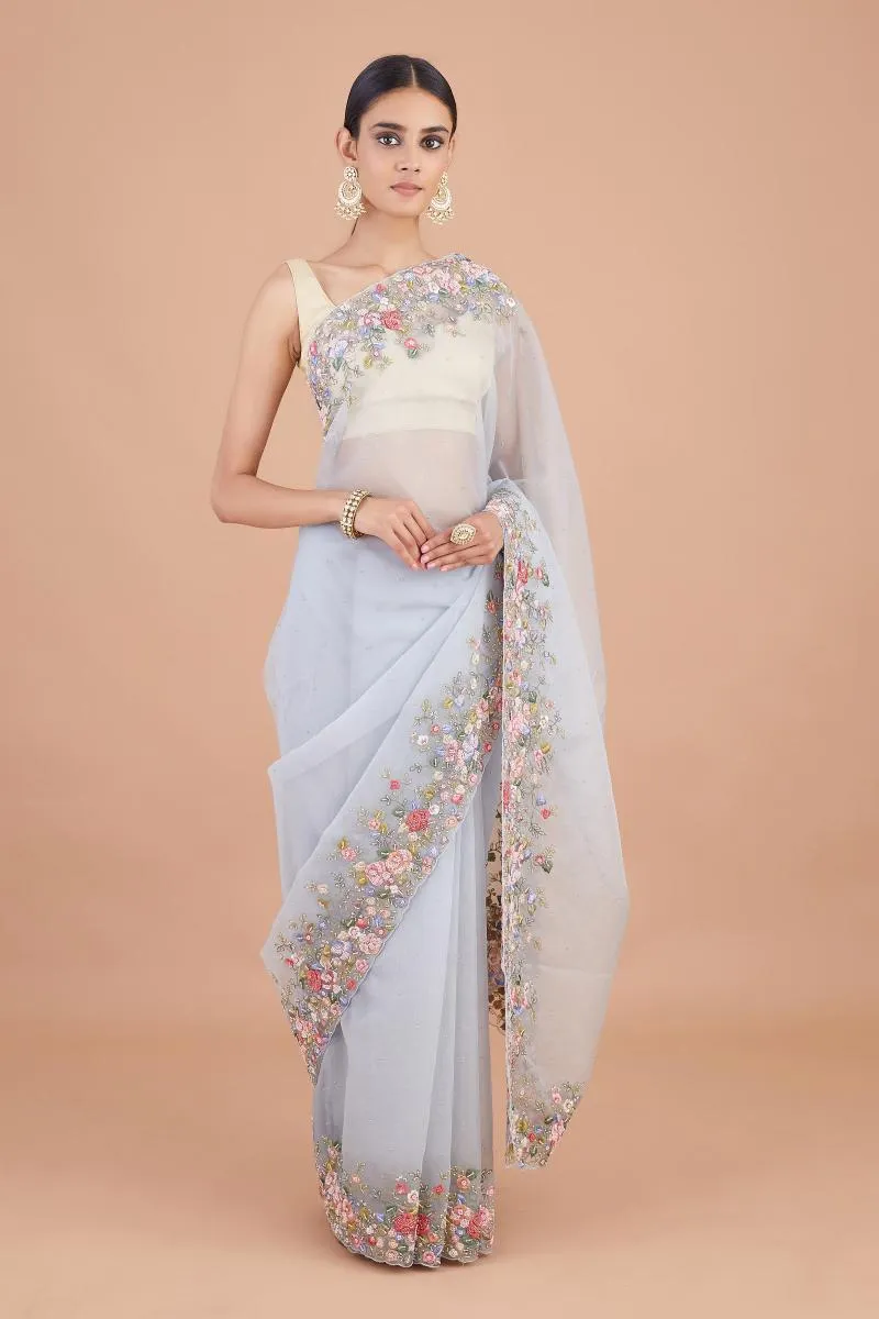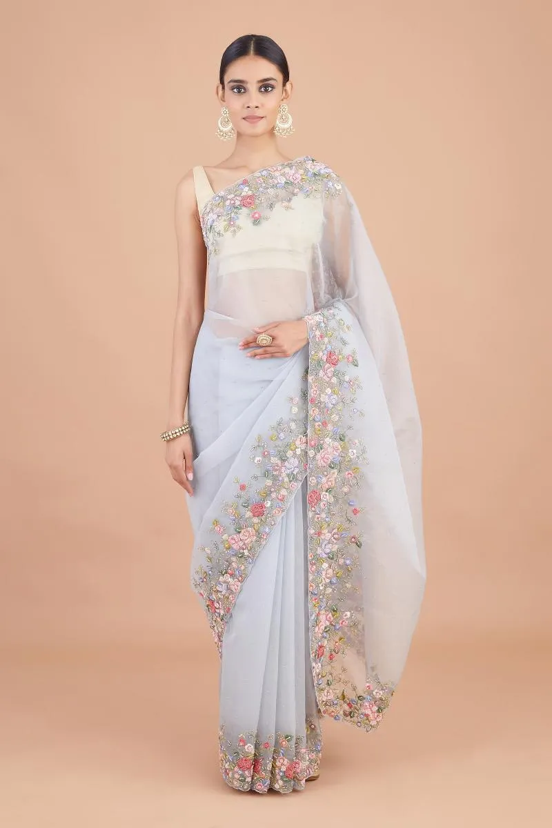 Professional dry cleanning only. Garment should be kept in Soft Muslin fabric. Do not spray perfume direictly on garment. Avoid moth ball use. Kindly keep the garment in moderate climate as same of the embroidery material tends to react with weather change.