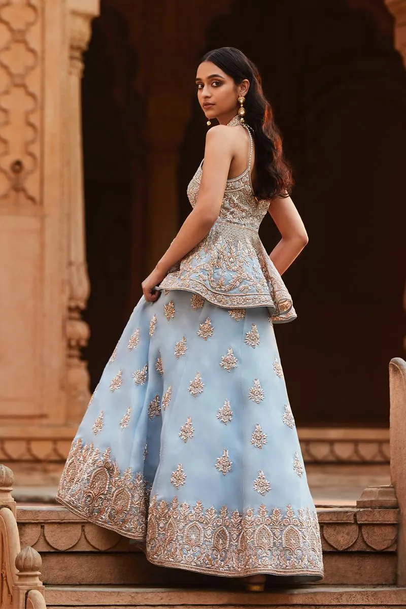 Powder Blue Peplum Style Lehenga Set