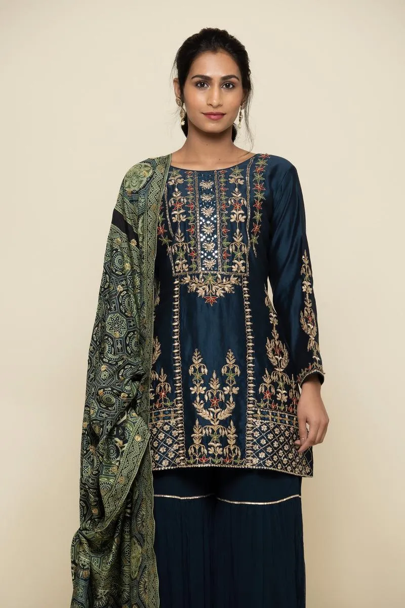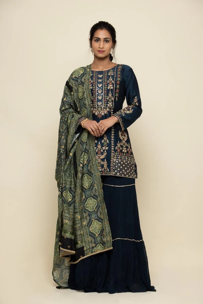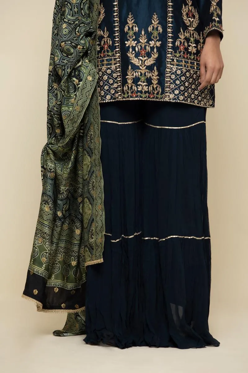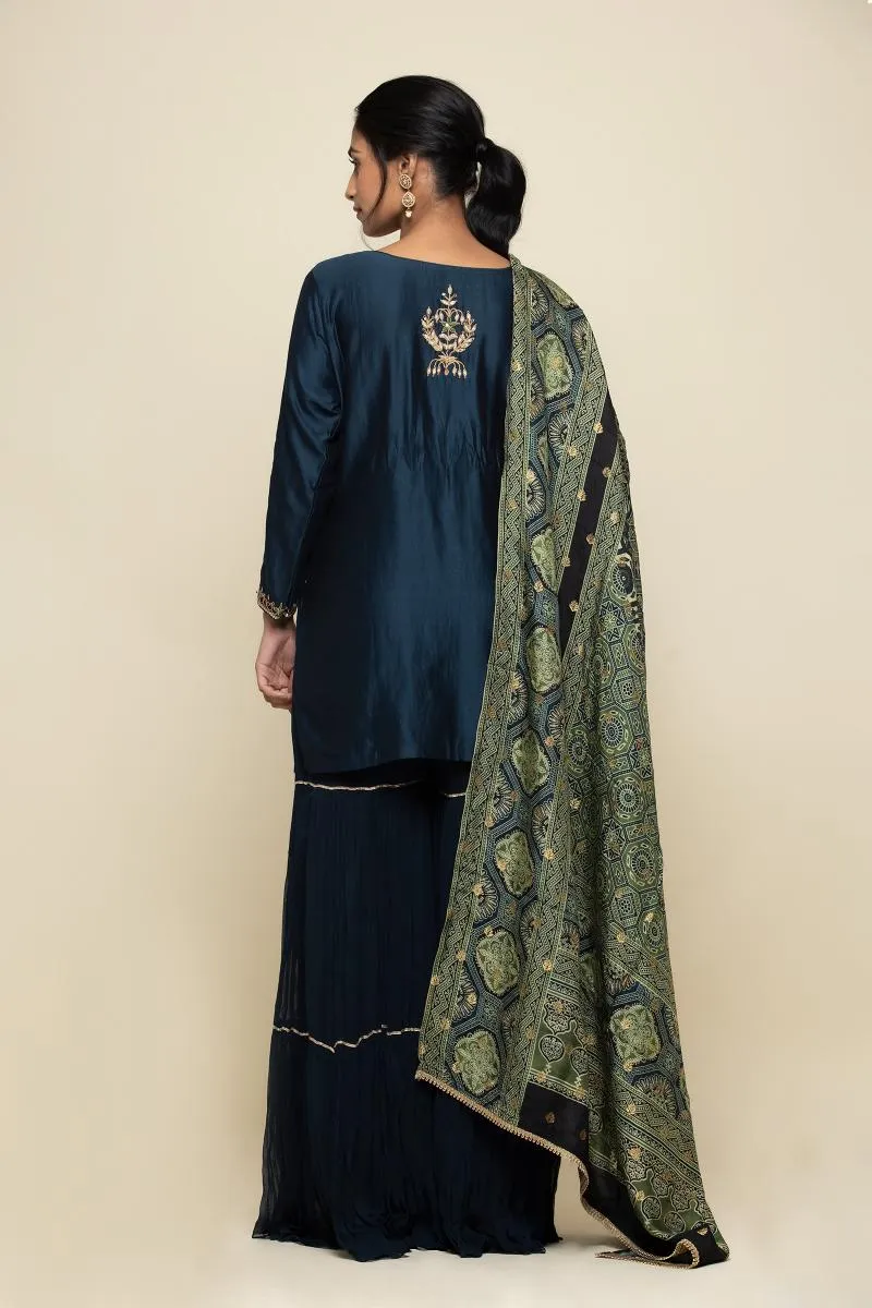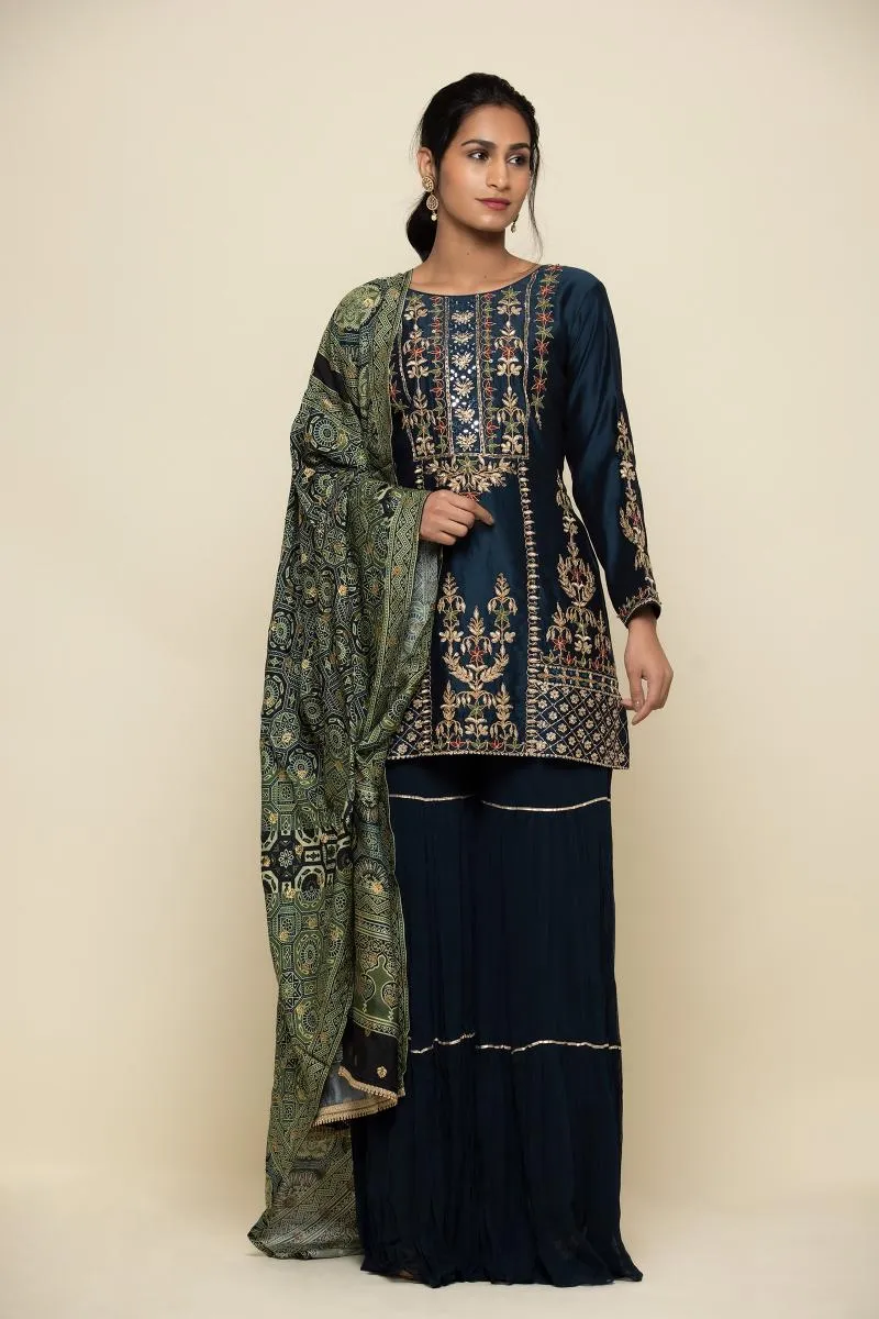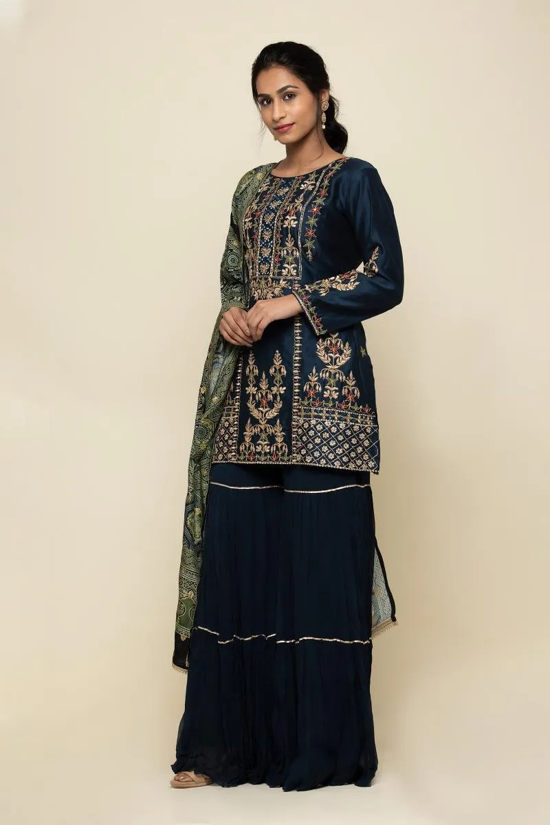 Prussian Blue Silk Sharara Suit