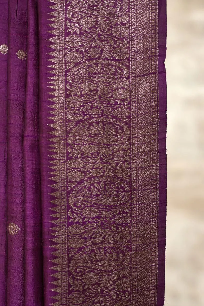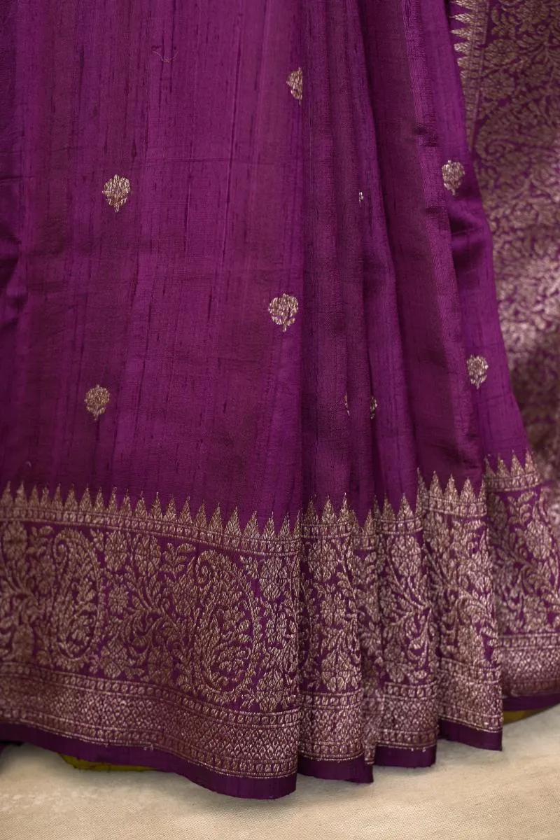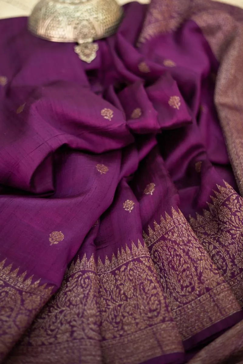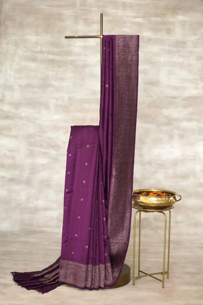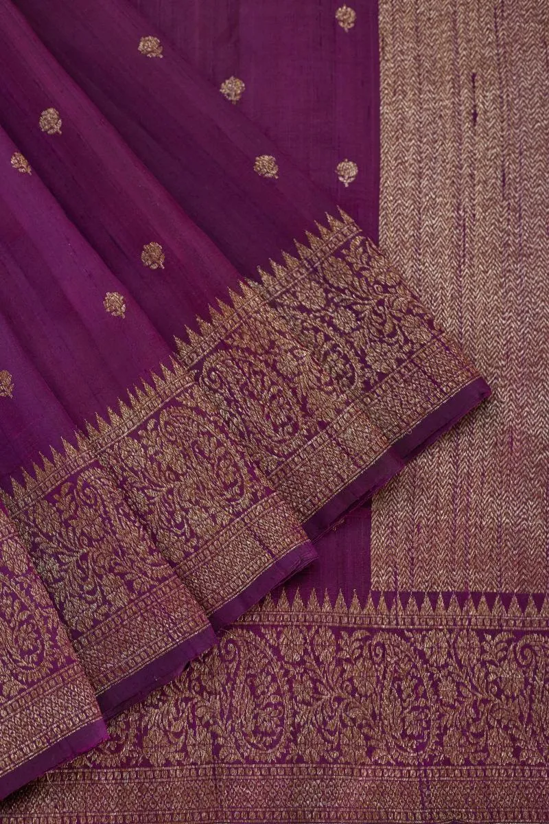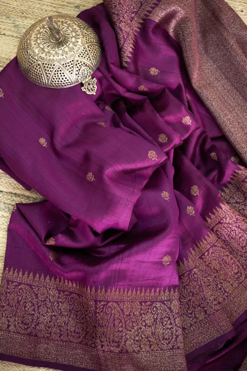 Purple Wine Banarasi Tussar Silk Saree