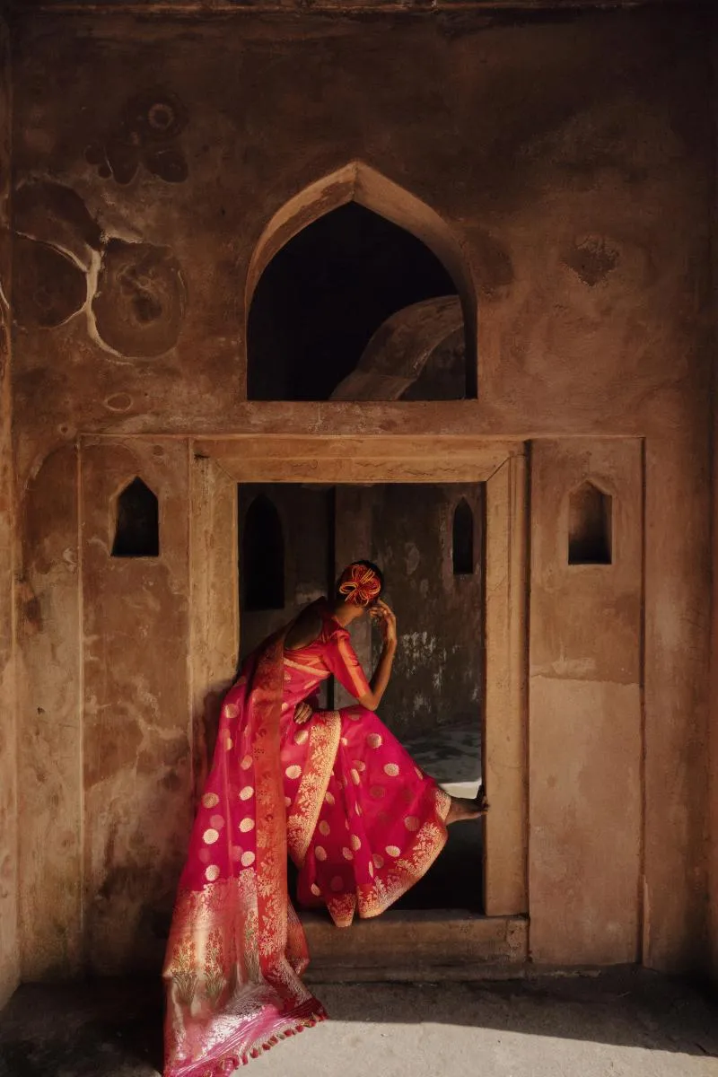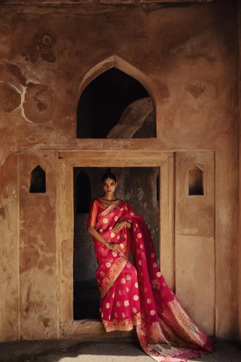 Rani Pink Banarasi Kora Saree