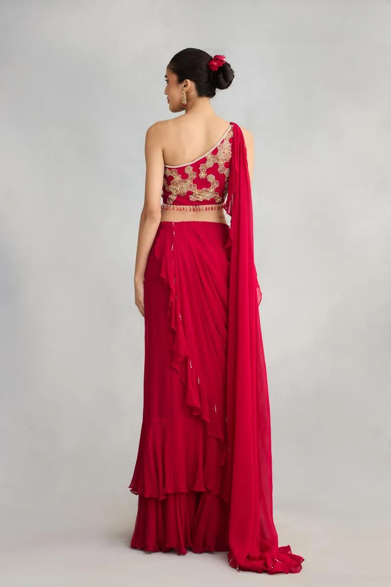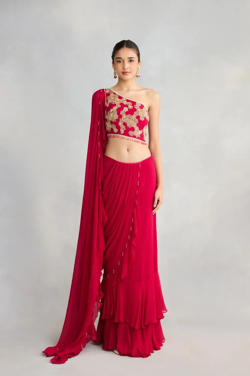 Professional dry-cleaning only. The garment should be kept in Soft Muslin fabric. Do not spray perfume directly on garment. Avoid mothball use. Kindly keep the garment in moderate climate as same of the embroidery material tends to react with the weather change.