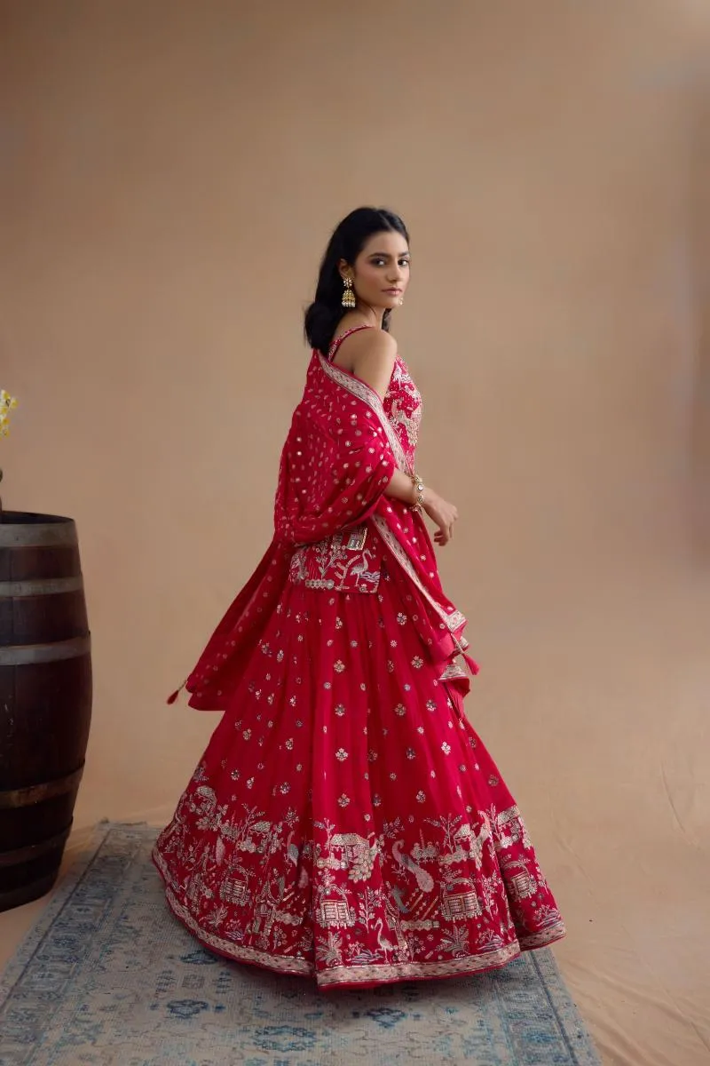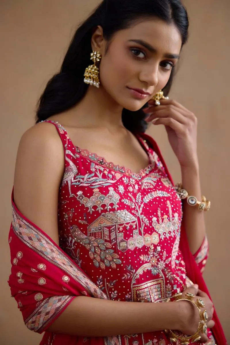 Professional dry-cleaning only. The garment should be kept in Soft Muslin fabric. Do not spray perfume directly on garment. Avoid mothball use. Kindly keep the garment in moderate climate as same of the embroidery material tends to react with the weather change.