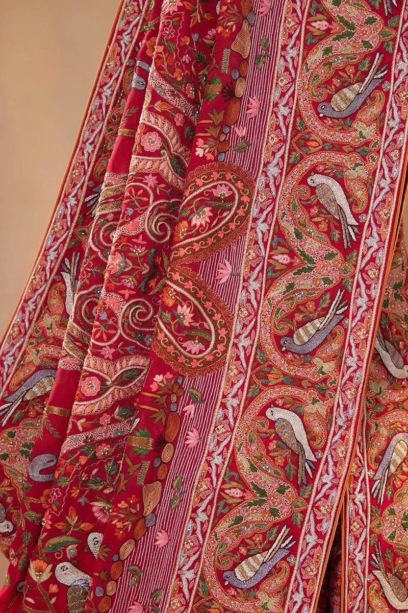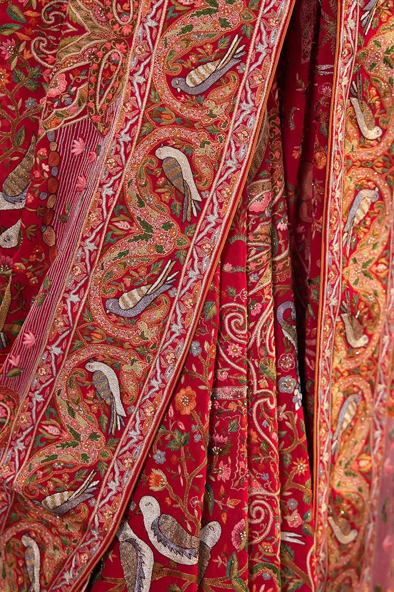 Professional dry-cleaning only. The garment should be kept in Soft Muslin fabric. Do not spray perfume directly on garment. Avoid mothball use. Kindly keep the garment in moderate climate as same of the embroidery material tends to react with the weather change.