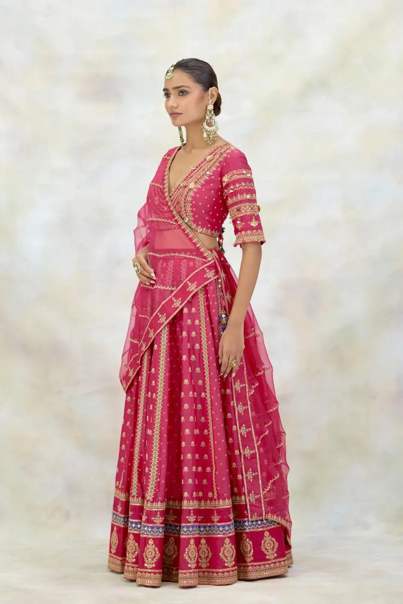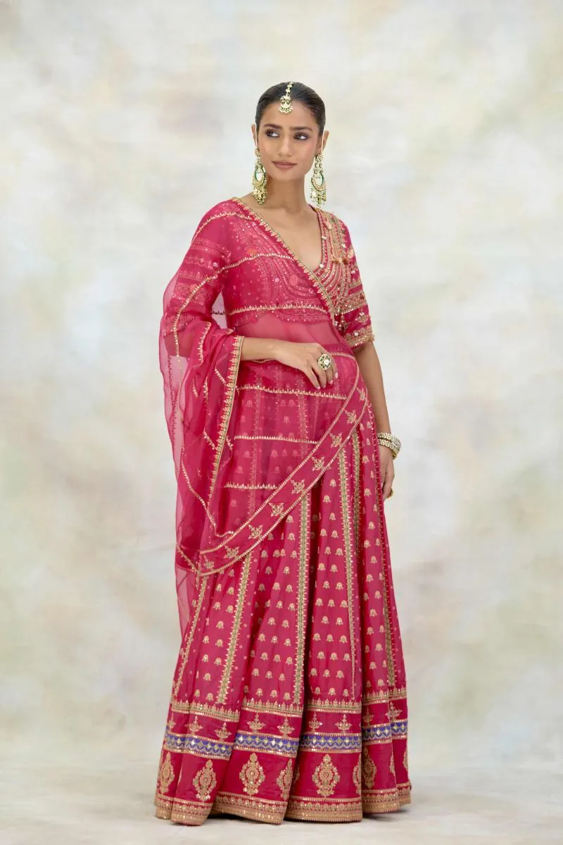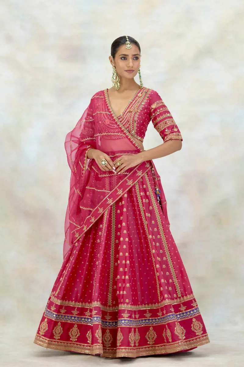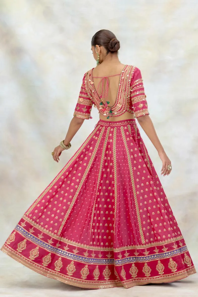 Professional dry-cleaning only. The garment should be kept in Soft Muslin fabric. Do not spray perfume directly on garment. Avoid mothball use. Kindly keep the garment in moderate climate as same of the embroidery material tends to react with the weather change.