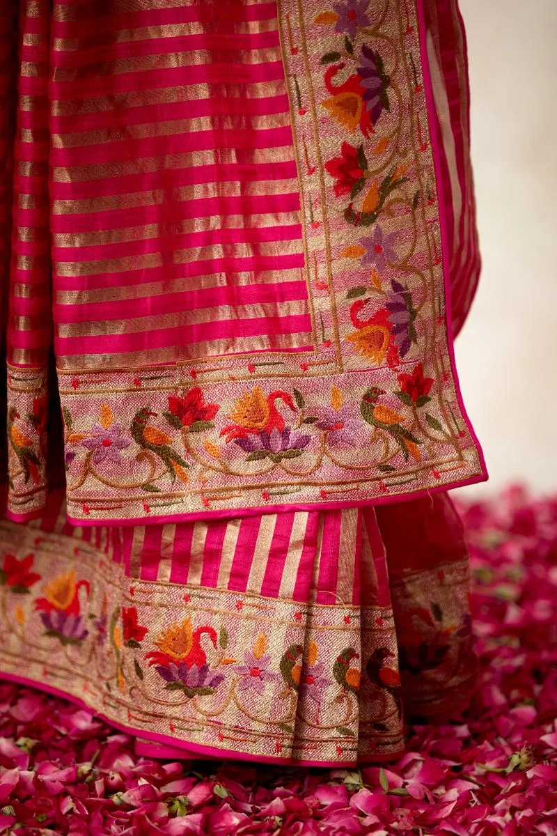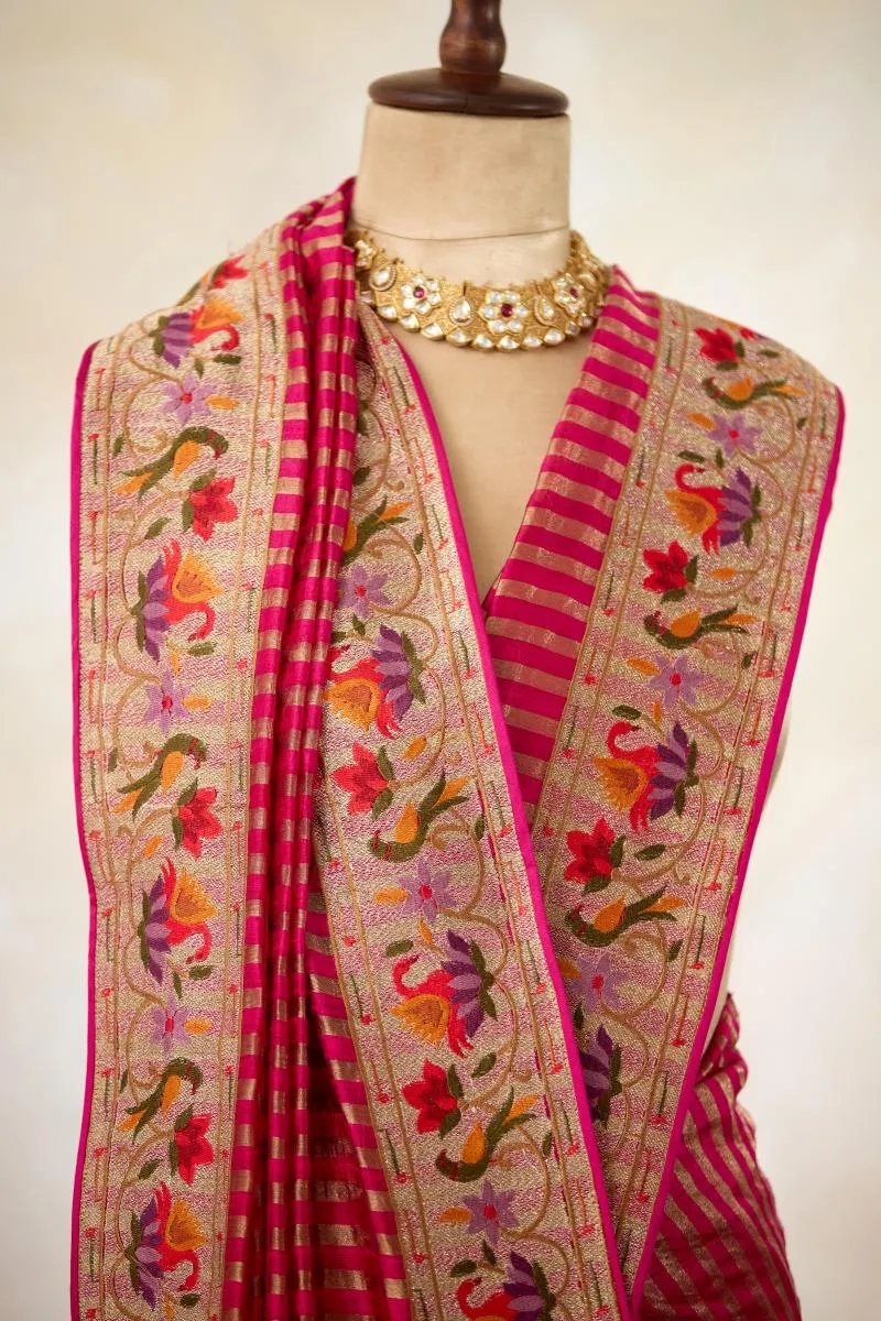 Rani Pink Tussar Slik Saree