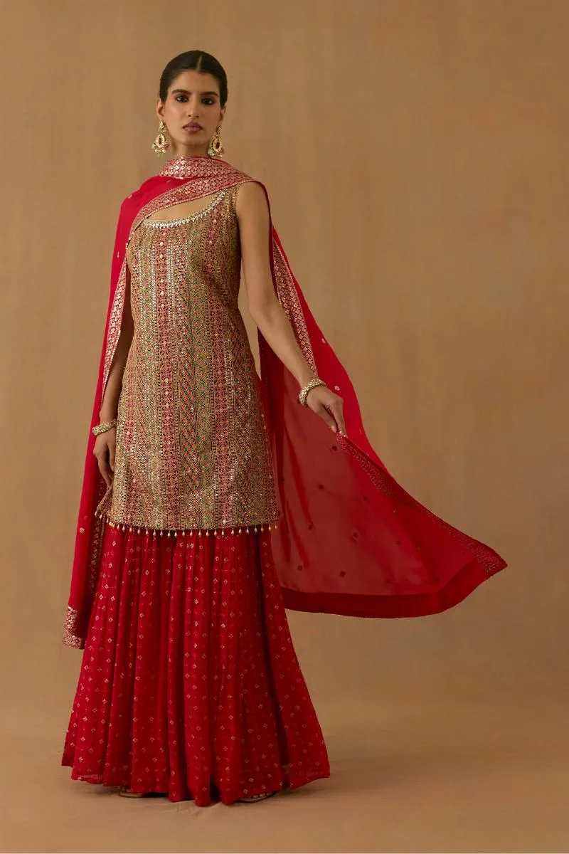 Rani Red Georgette Garara Set