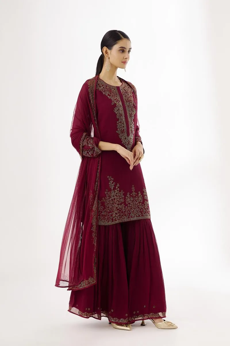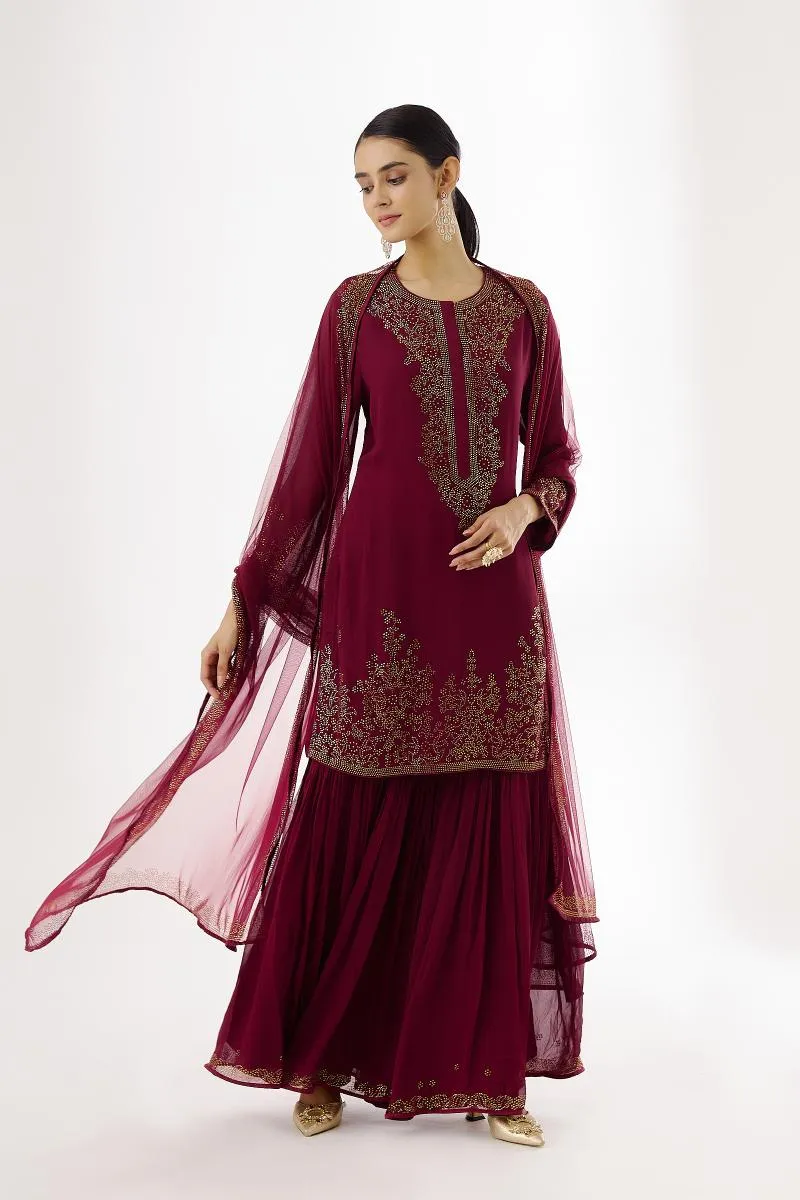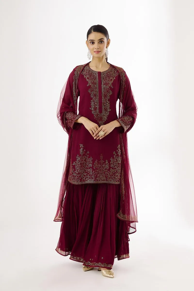 Professional dry-cleaning only. The garment should be kept in Soft Muslin fabric. Do not spray perfume directly on garment. Avoid mothball use. Kindly keep the garment in moderate climate as same of the embroidery material tends to react with the weather change.