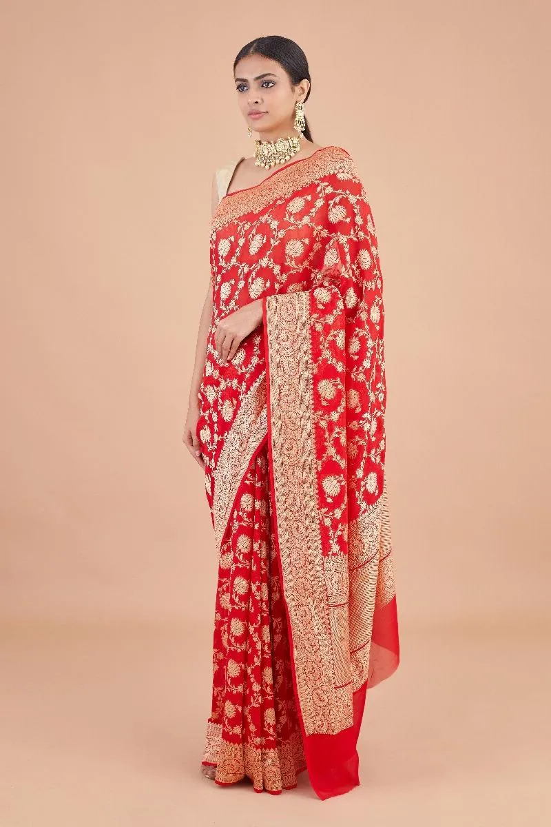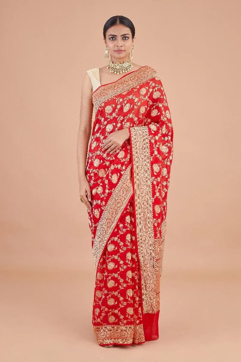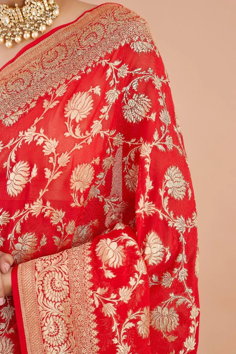 Red Banarasi Georgette Saree
