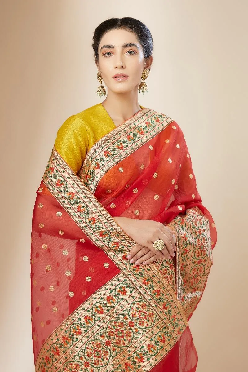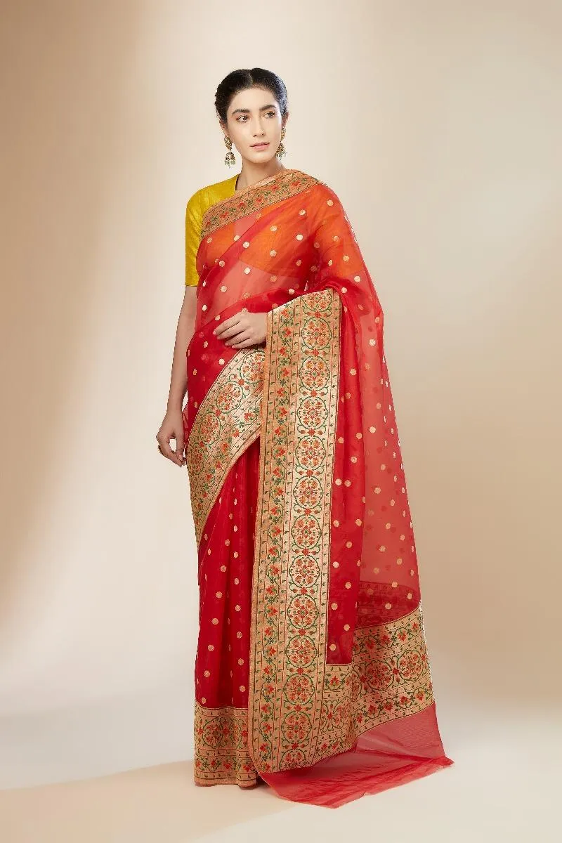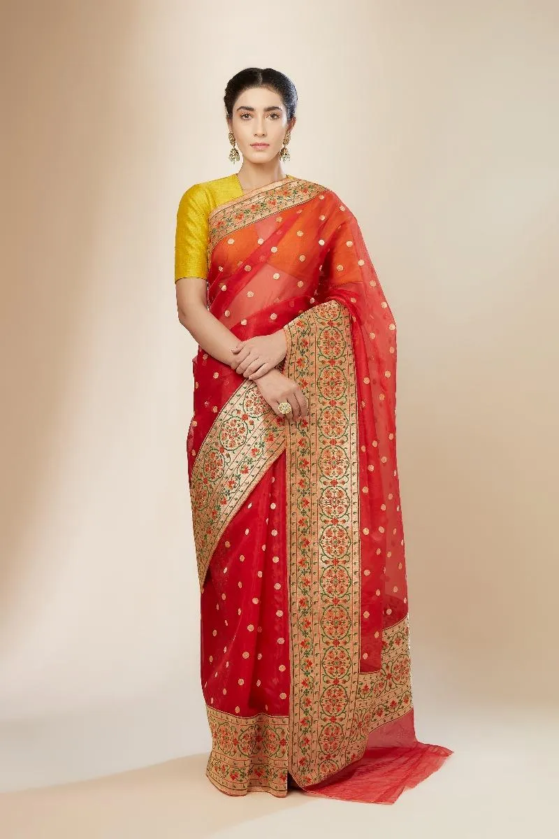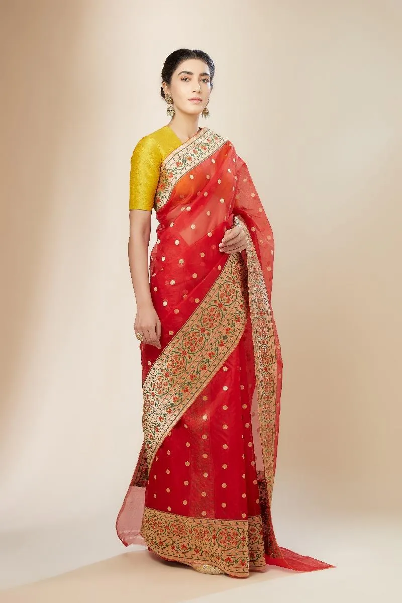 Professional dry cleanning only. Garment should be kept in Soft Muslin fabric. Do not spray perfume direictly on garment. Avoid moth ball use. Kindly keep the garment in moderate climate as same of the embroidery material tends to react with weather change.