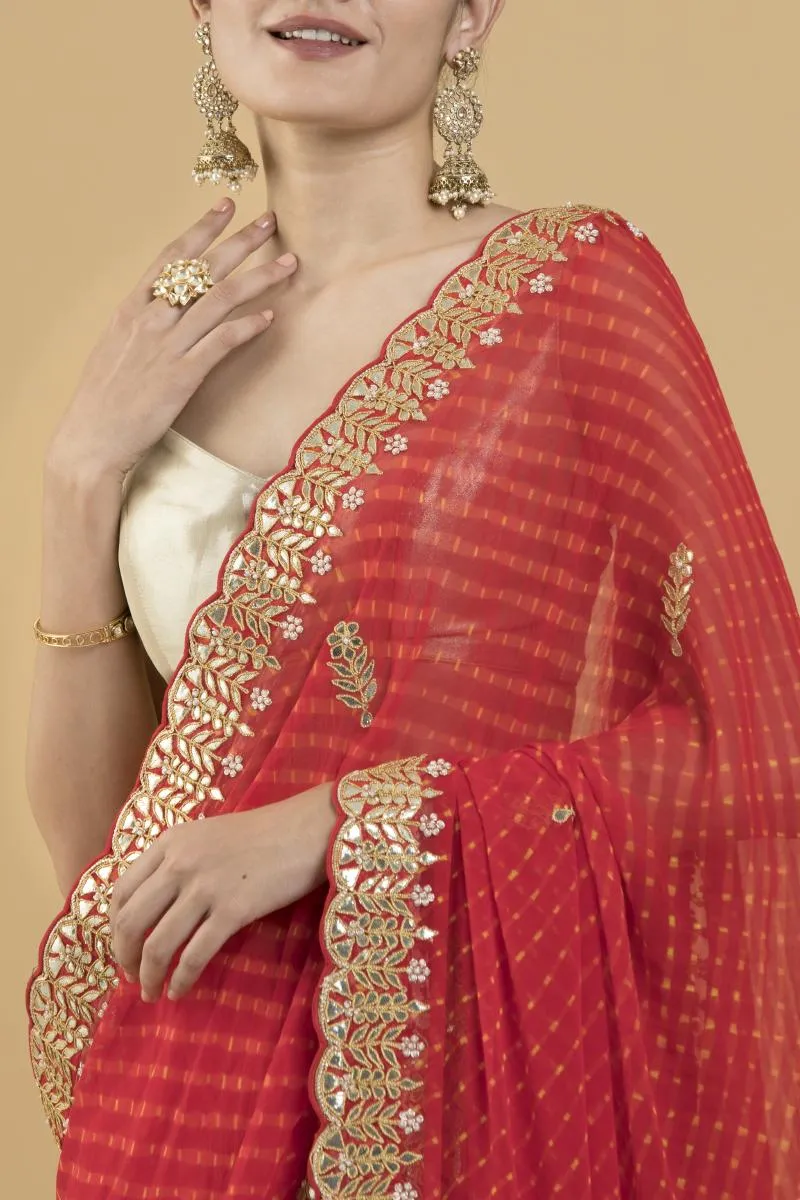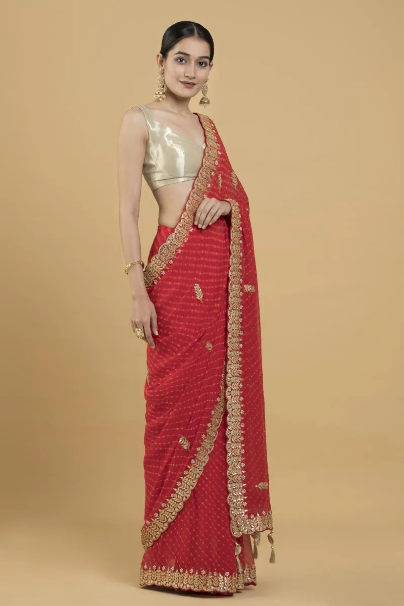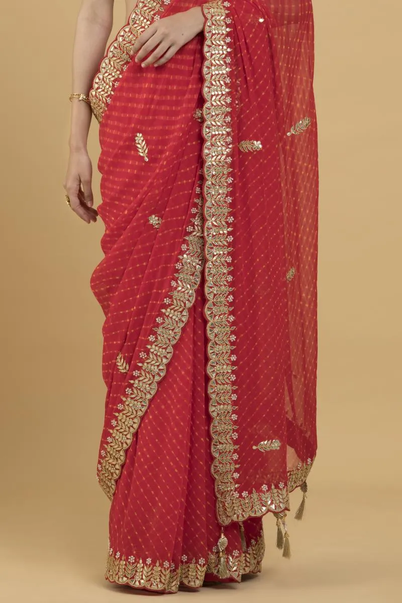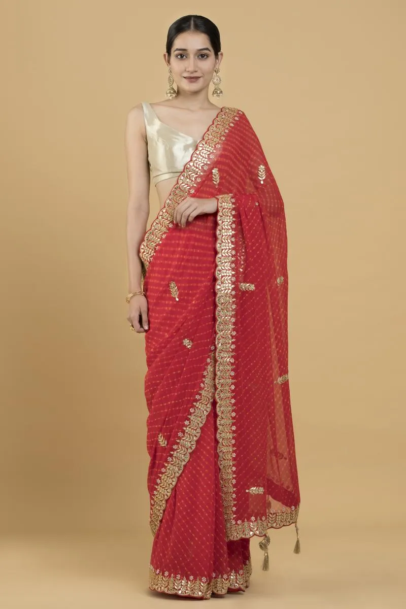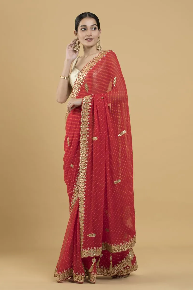 Red Lehriya Bandhani Georgette Saree