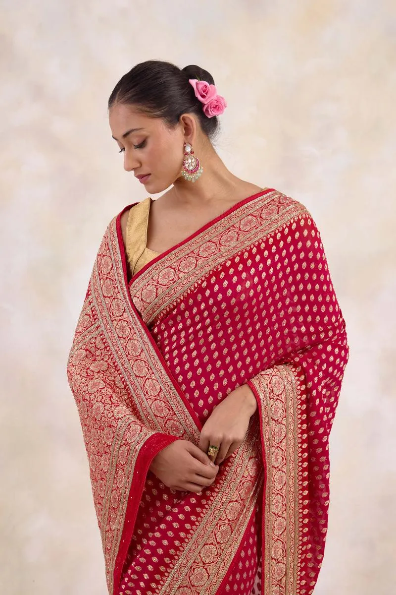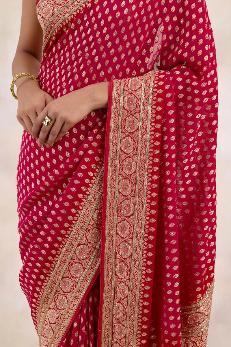 Professional dry-cleaning only. The garment should be kept in Soft Muslin fabric. Do not spray perfume directly on garment. Avoid mothball use. Kindly keep the garment in moderate climate as same of the embroidery material tends to react with the weather change.