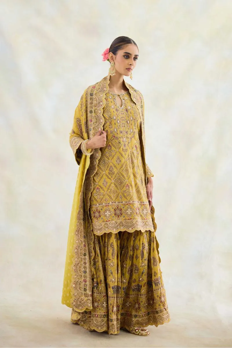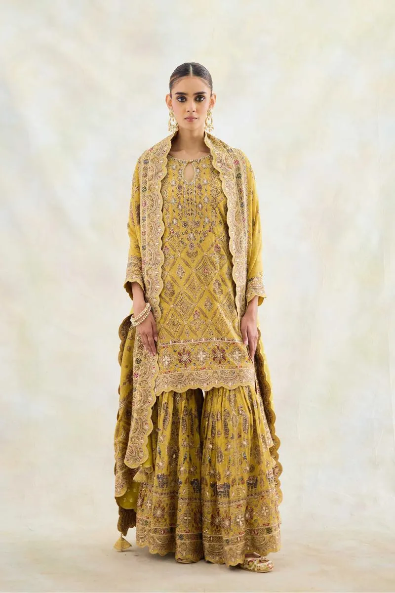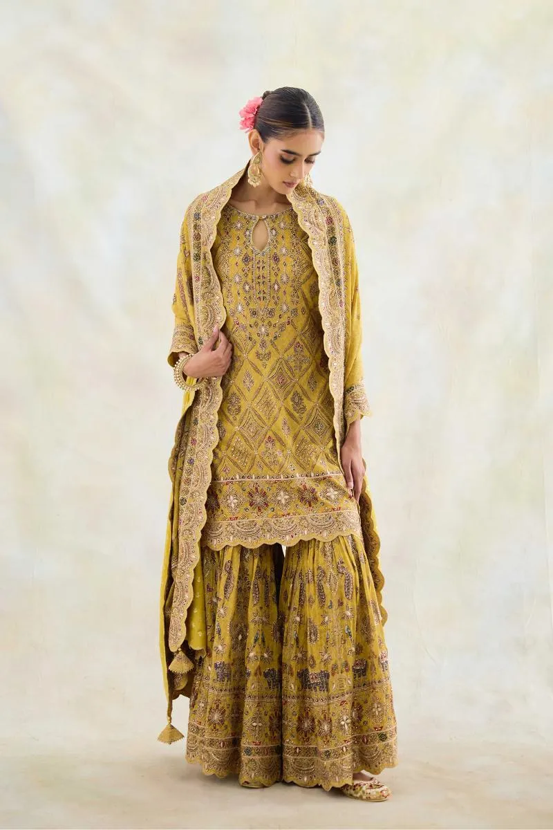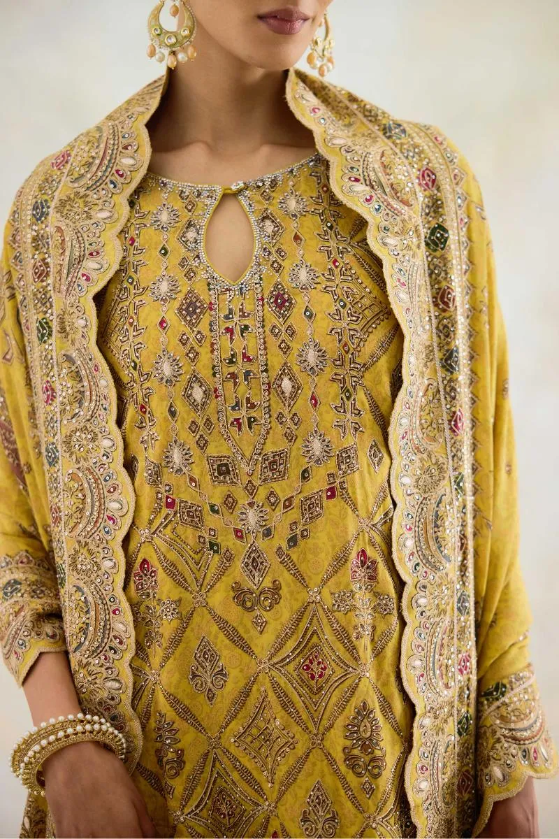 Professional dry-cleaning only. The garment should be kept in Soft Muslin fabric. Do not spray perfume directly on garment. Avoid mothball use. Kindly keep the garment in moderate climate as same of the embroidery material tends to react with the weather change.