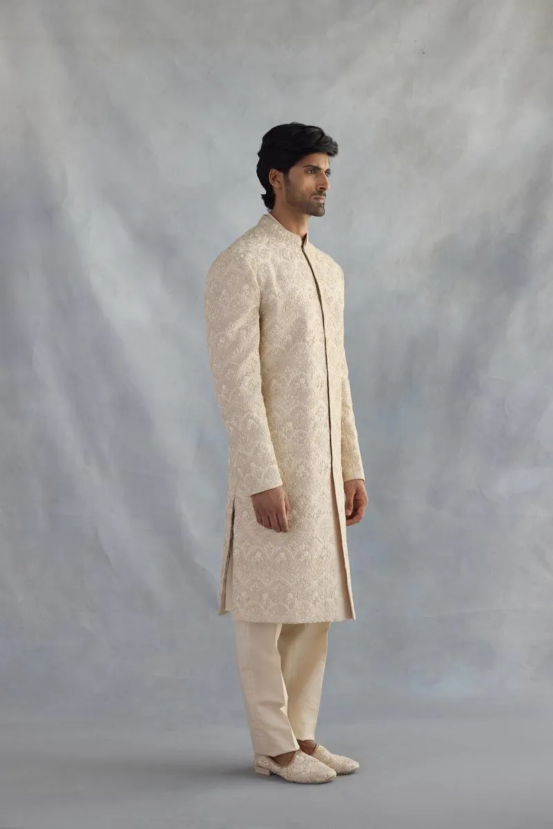 Professional dry-cleaning only. The garment should be kept in Soft Muslin fabric. Do not spray perfume directly on garment. Avoid mothball use. Kindly keep the garment in moderate climate as same of the embroidery material tends to react with the weather change.