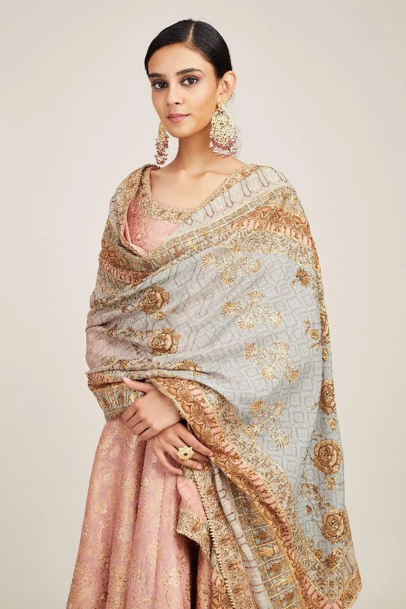 Professional dry cleanning only. Garment should be kept in Soft Muslin fabric. Do not spray perfume direictly on garment. Avoid moth ball use. Kindly keep the garment in moderate climate as same of the embroidery material tends to react with weather change.
