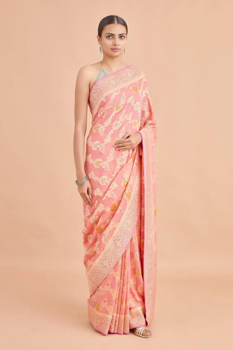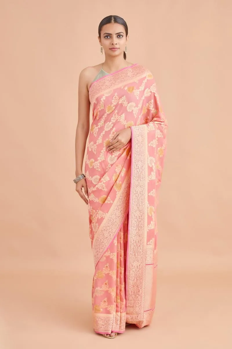 Professional dry cleanning only. Garment should be kept in Soft Muslin fabric. Do not spray perfume direictly on garment. Avoid moth ball use. Kindly keep the garment in moderate climate as same of the embroidery material tends to react with weather change.