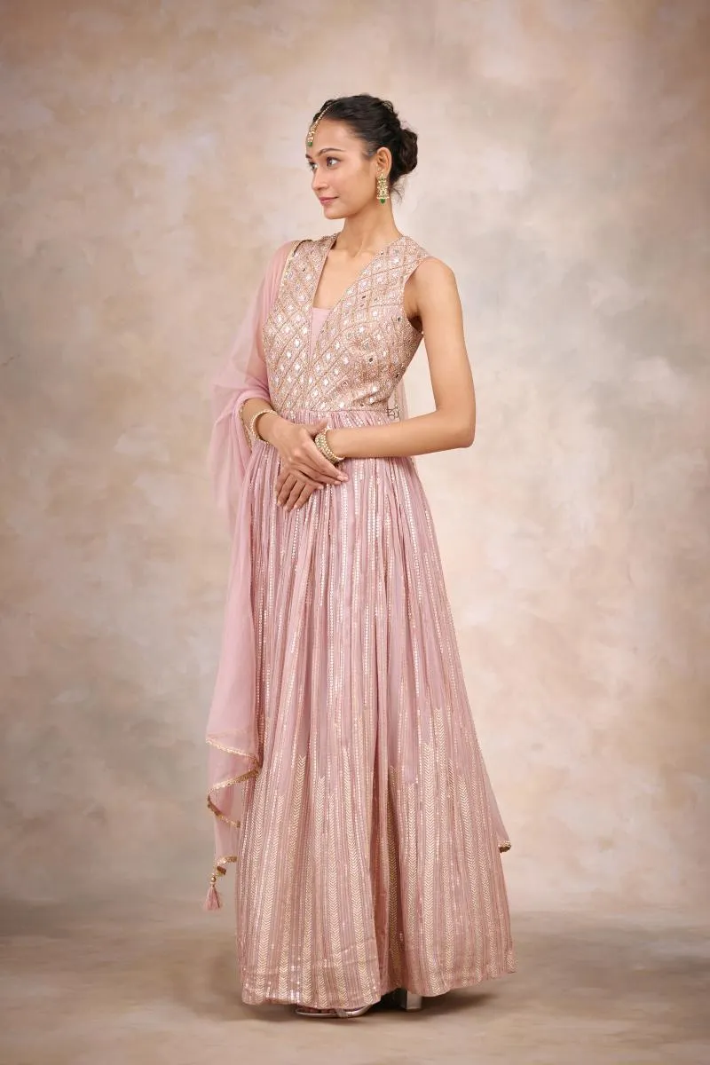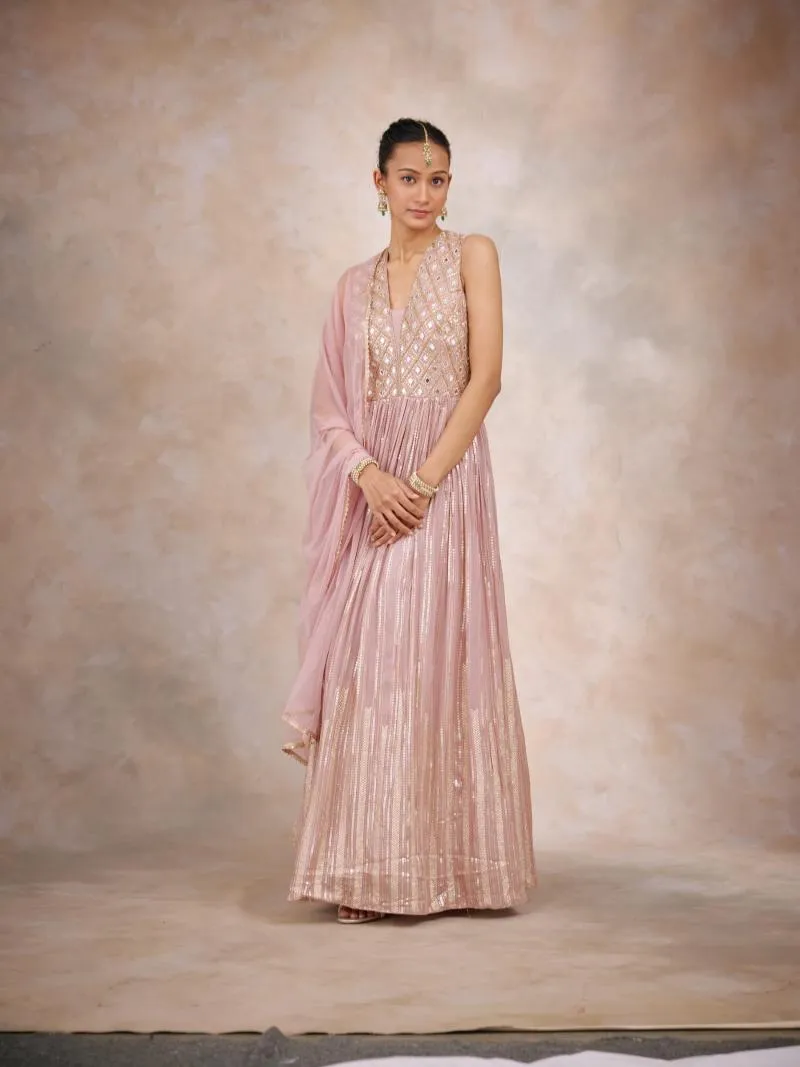 Professional dry cleaning only. The garment should be kept in Soft Muslin fabric. Do not spray perfume directly on garment. Avoid mothball use. Kindly keep the garment in moderate climate as same of the embroidery material tends to react with the weather change.