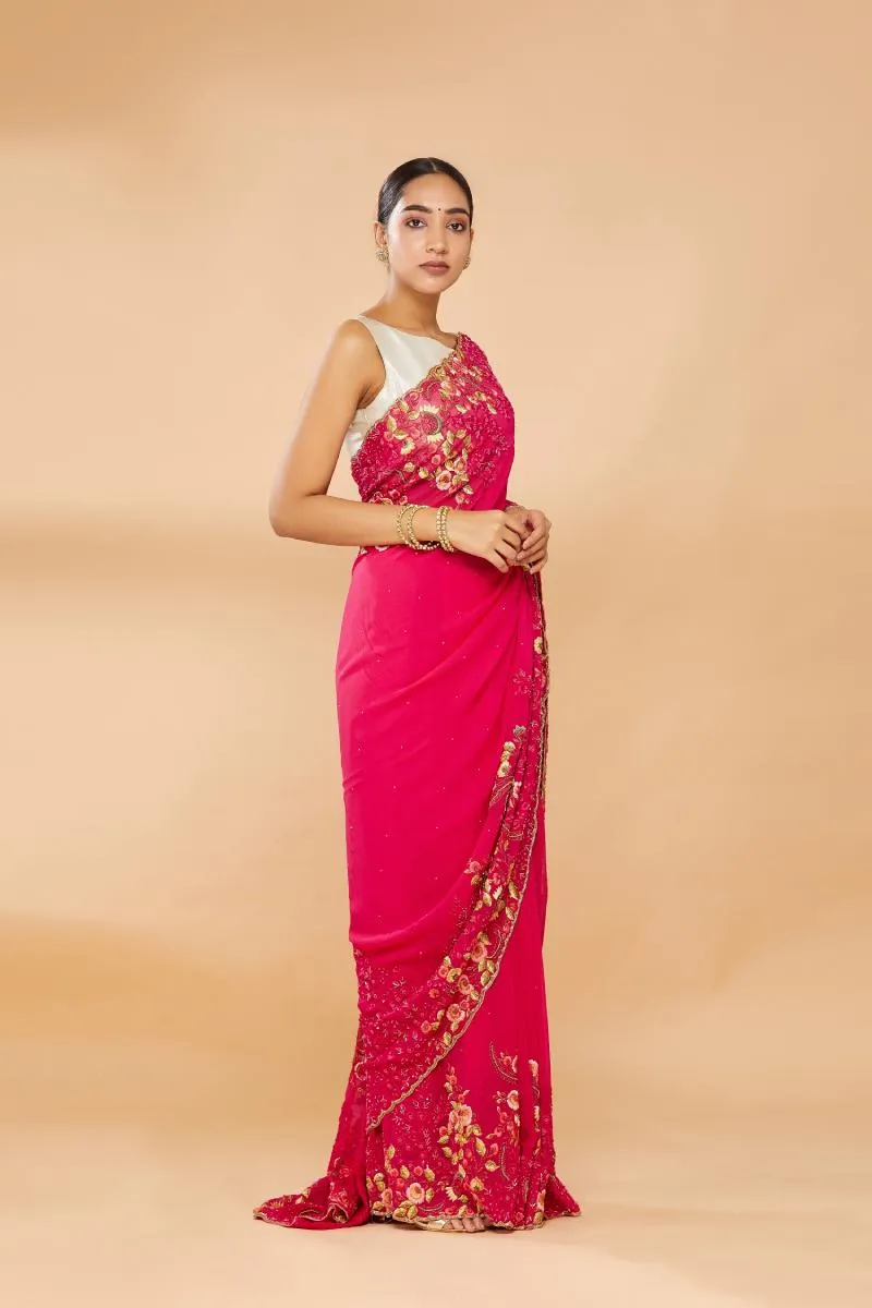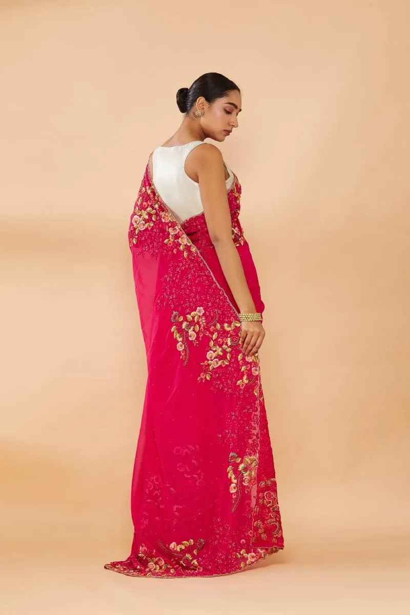 Ruby Pink Embroidered Saree