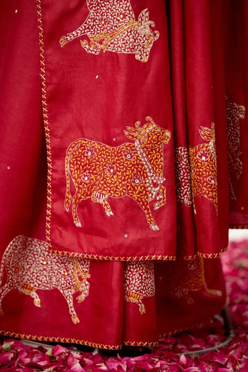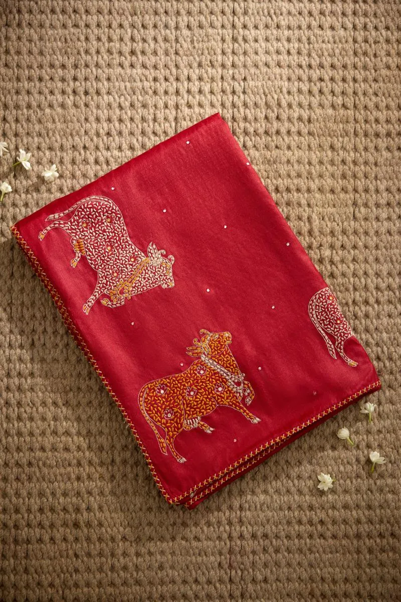 Rust Red Tussar Silk Saree