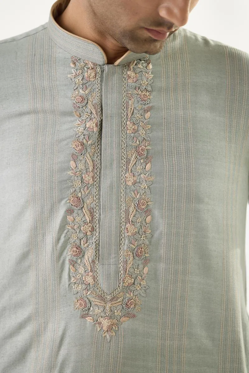 Professional dry-cleaning only. The garment should be kept in Soft Muslin fabric. Do not spray perfume directly on garment. Avoid mothball use. Kindly keep the garment in moderate climate as same of the embroidery material tends to react with the weather change.