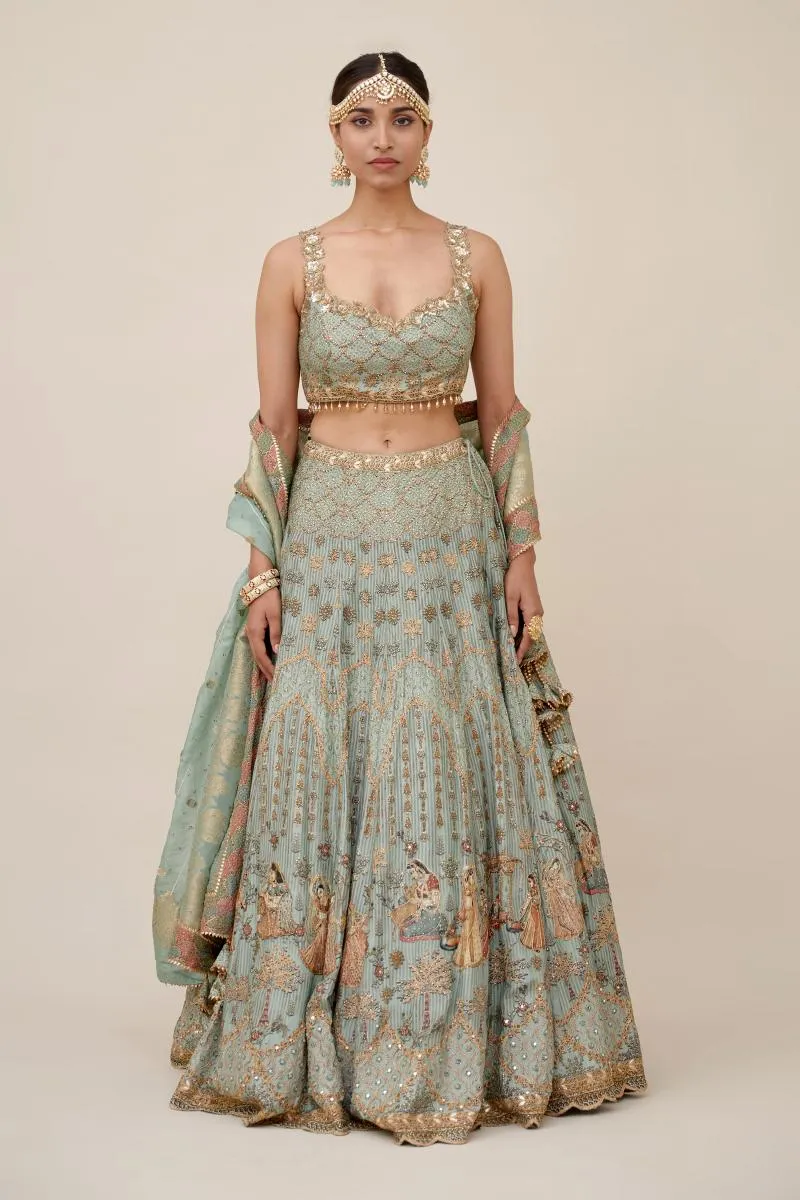 Sage Green Crepe Lehenga
