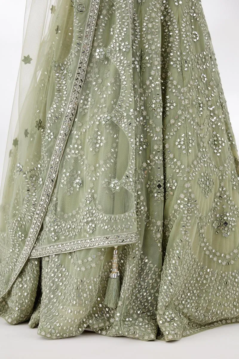 Professional dry-cleaning only. The garment should be kept in Soft Muslin fabric. Do not spray perfume directly on garment. Avoid mothball use. Kindly keep the garment in moderate climate as same of the embroidery material tends to react with the weather change.