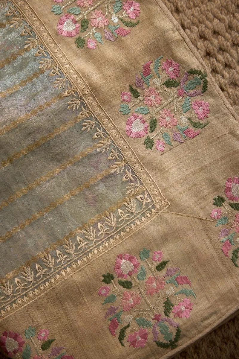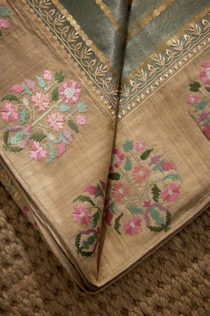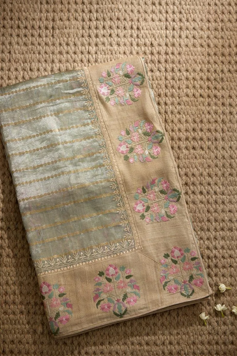 Sage Grey Tissue Silk Saree