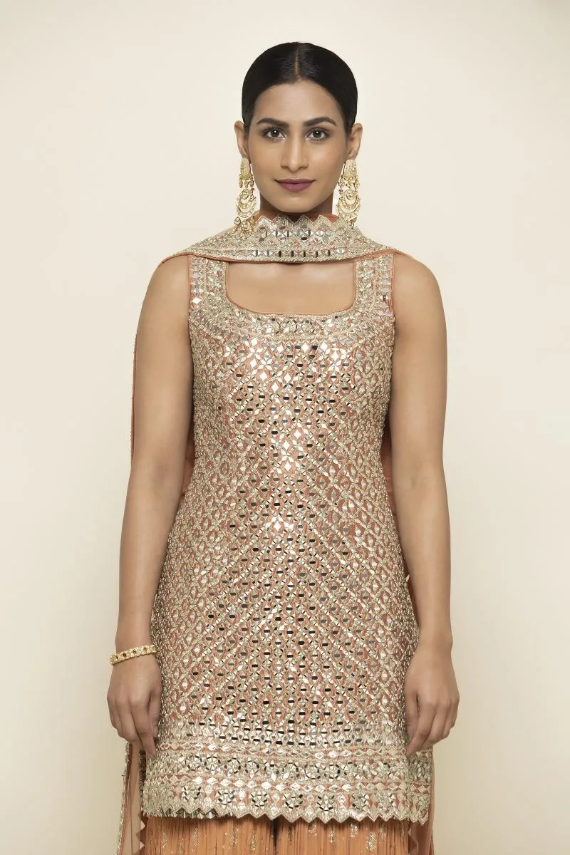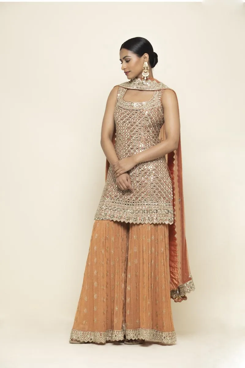 Professional dry-cleaning only. The garment should be kept in Soft Muslin fabric. Do not spray perfume directly on garment. Avoid mothball use. Kindly keep the garment in moderate climate as same of the embroidery material tends to react with the weather change.