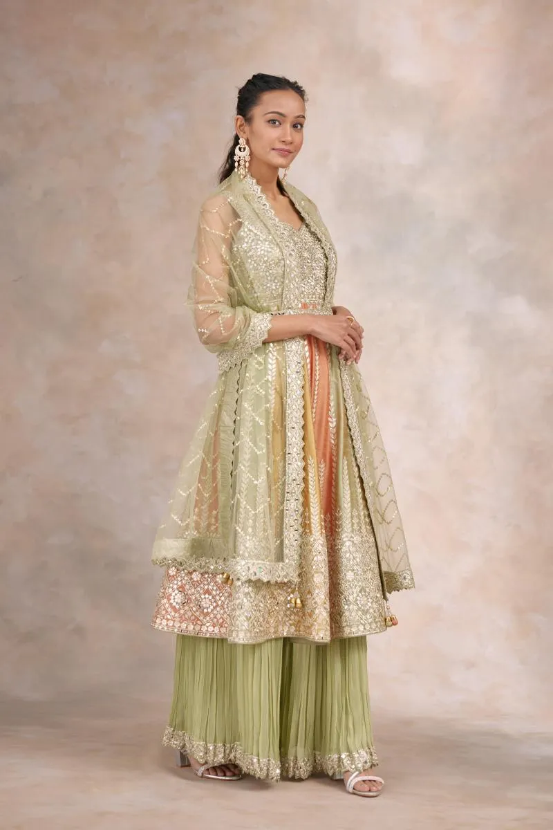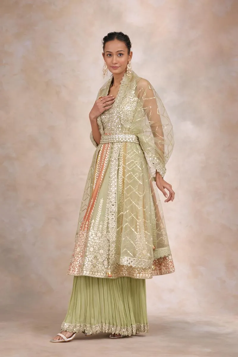 Professional dry cleaning only. The garment should be kept in Soft Muslin fabric. Do not spray perfume directly on garment. Avoid mothball use. Kindly keep the garment in moderate climate as same of the embroidery material tends to react with the weather change.