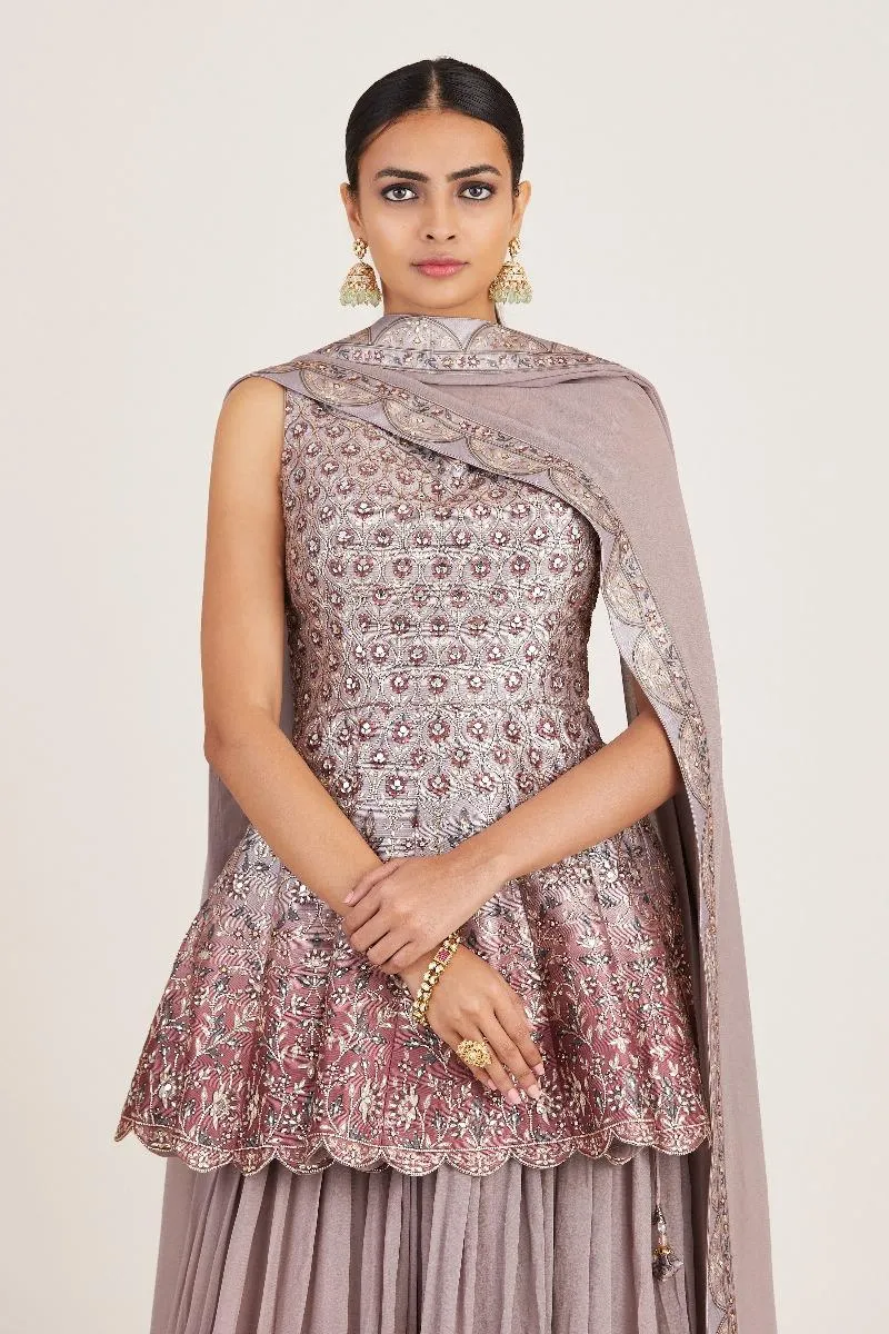 Professional dry cleanning only. Garment should be kept in Soft Muslin fabric. Do not spray perfume direictly on garment. Avoid moth ball use. Kindly keep the garment in moderate climate as same of the embroidery material tends to react with weather change.