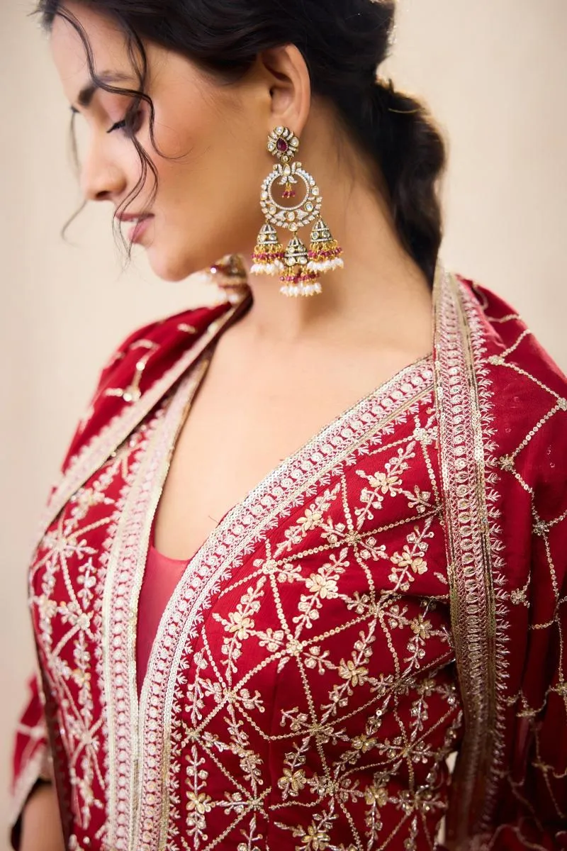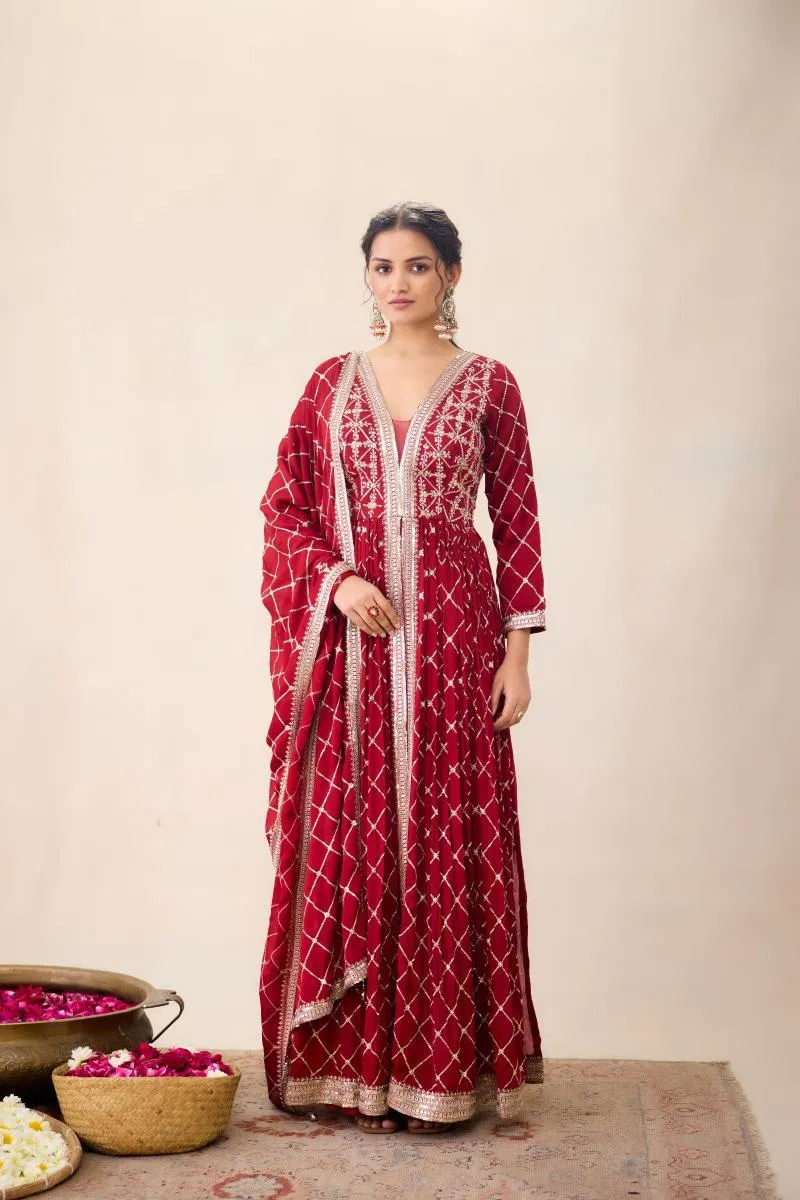 Professional dry-cleaning only. The garment should be kept in Soft Muslin fabric. Do not spray perfume directly on garment. Avoid mothball use. Kindly keep the garment in moderate climate as same of the embroidery material tends to react with the weather change.