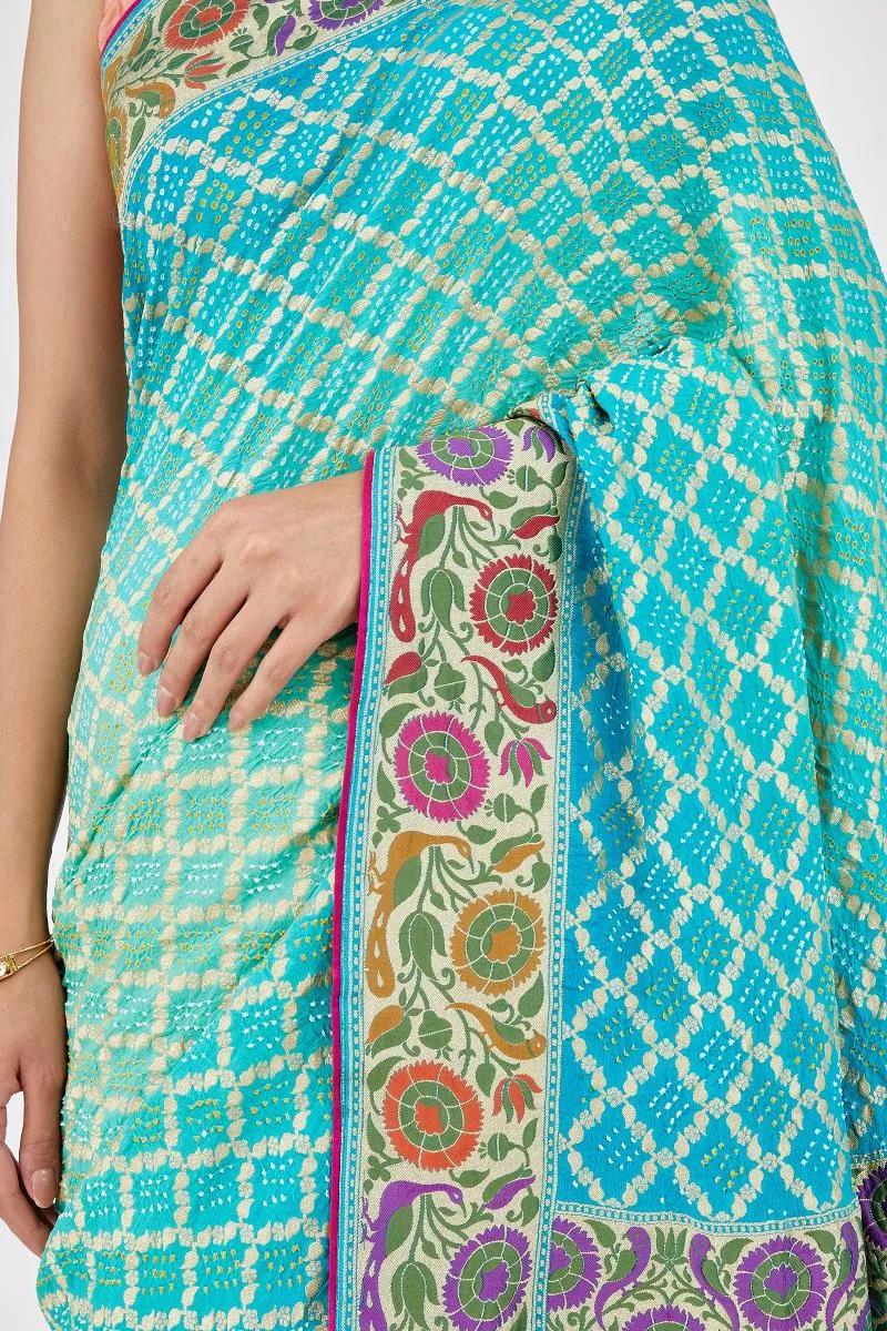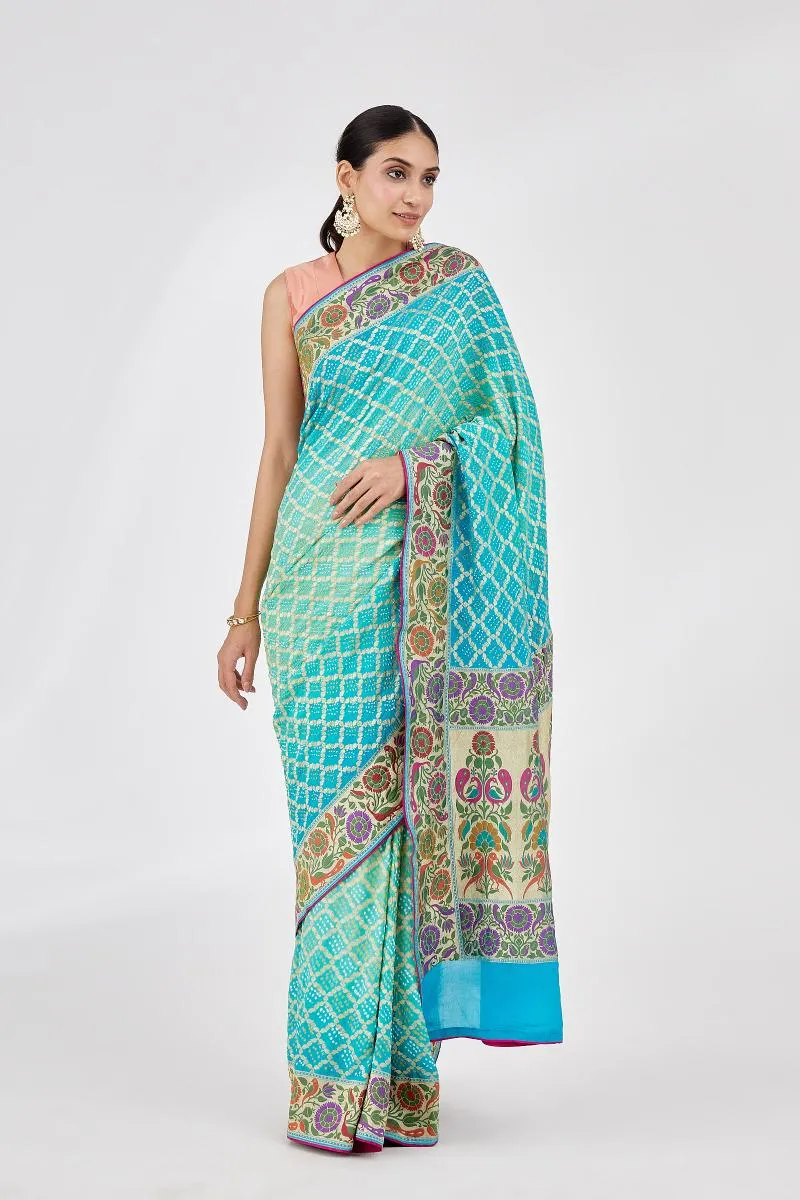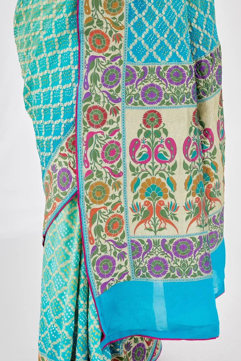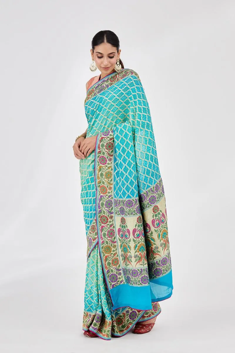 Sea Green Meenakari Bandhani Saree