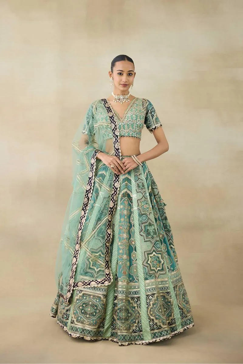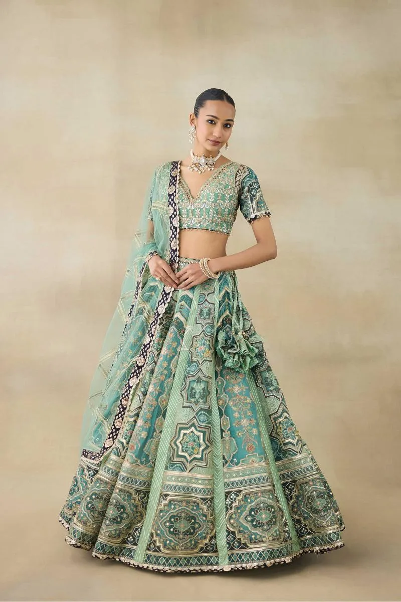 Professional dry-cleaning only. The garment should be kept in Soft Muslin fabric. Do not spray perfume directly on garment. Avoid mothball use. Kindly keep the garment in moderate climate as same of the embroidery material tends to react with the weather change.