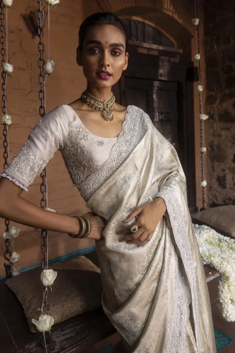 Professional dry-cleaning only. The garment should be kept in Soft Muslin fabric. Do not spray perfume directly on garment. Avoid mothball use. Kindly keep the garment in moderate climate as same of the embroidery material tends to react with the weather change.