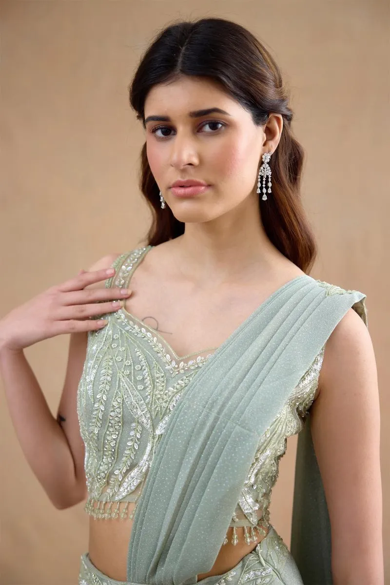 Professional dry-cleaning only. The garment should be kept in Soft Muslin fabric. Do not spray perfume directly on garment. Avoid mothball use. Kindly keep the garment in moderate climate as same of the embroidery material tends to react with the weather change.