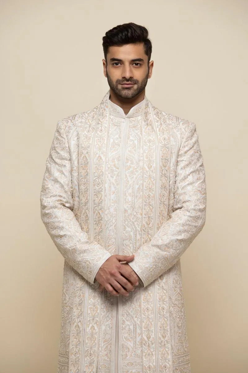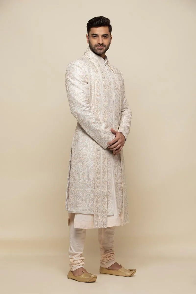 Professional dry-cleaning only. The garment should be kept Within Soft Muslin fabric. Do not spray perfume directly on garment. Avoid mothball use. Kindly keep the garment Within moderate climate as same of the embroidery material tends to react with the weather change.