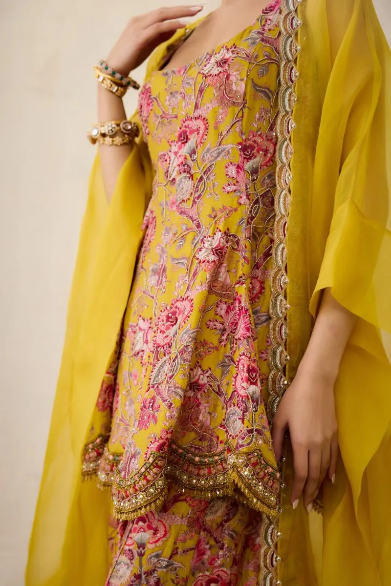 Professional dry-cleaning only. The garment should be kept in Soft Muslin fabric. Do not spray perfume directly on garment. Avoid mothball use. Kindly keep the garment in moderate climate as same of the embroidery material tends to react with the weather change.