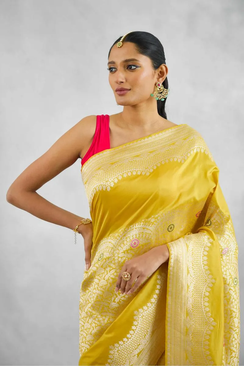 Professional dry-cleaning only. The garment should be kept in Soft Muslin fabric. Do not spray perfume directly on garment. Avoid mothball use. Kindly keep the garment in moderate climate as same of the embroidery material tends to react with the weather change.