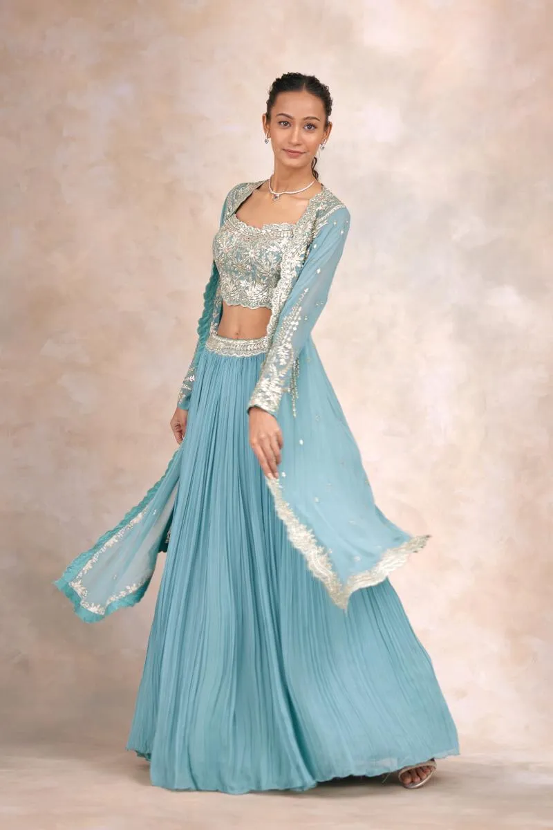 Professional dry cleaning only. The garment should be kept in Soft Muslin fabric. Do not spray perfume directly on garment. Avoid mothball use. Kindly keep the garment in moderate climate as same of the embroidery material tends to react with the weather change.