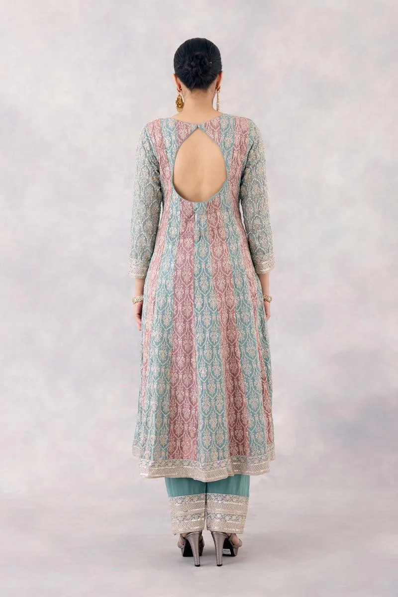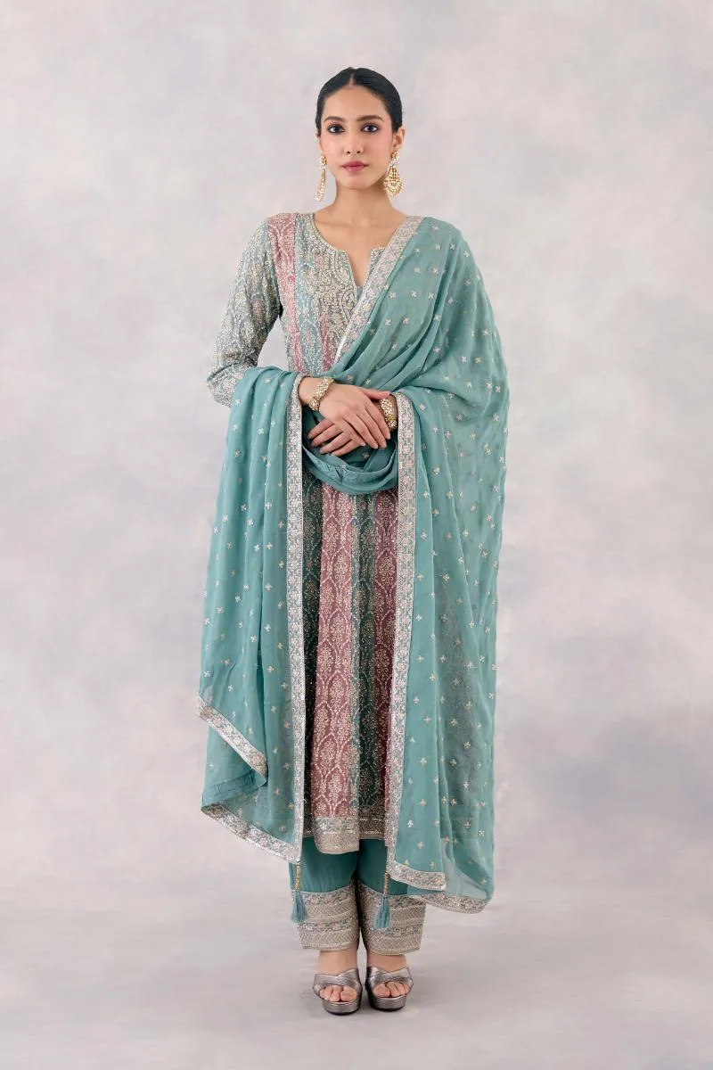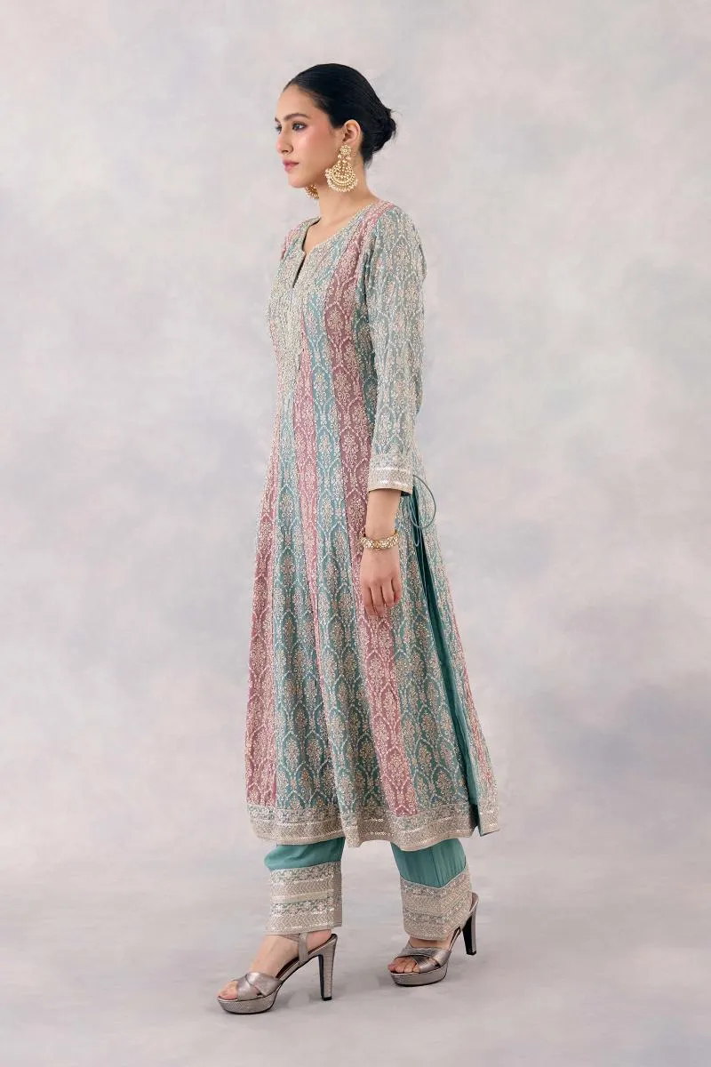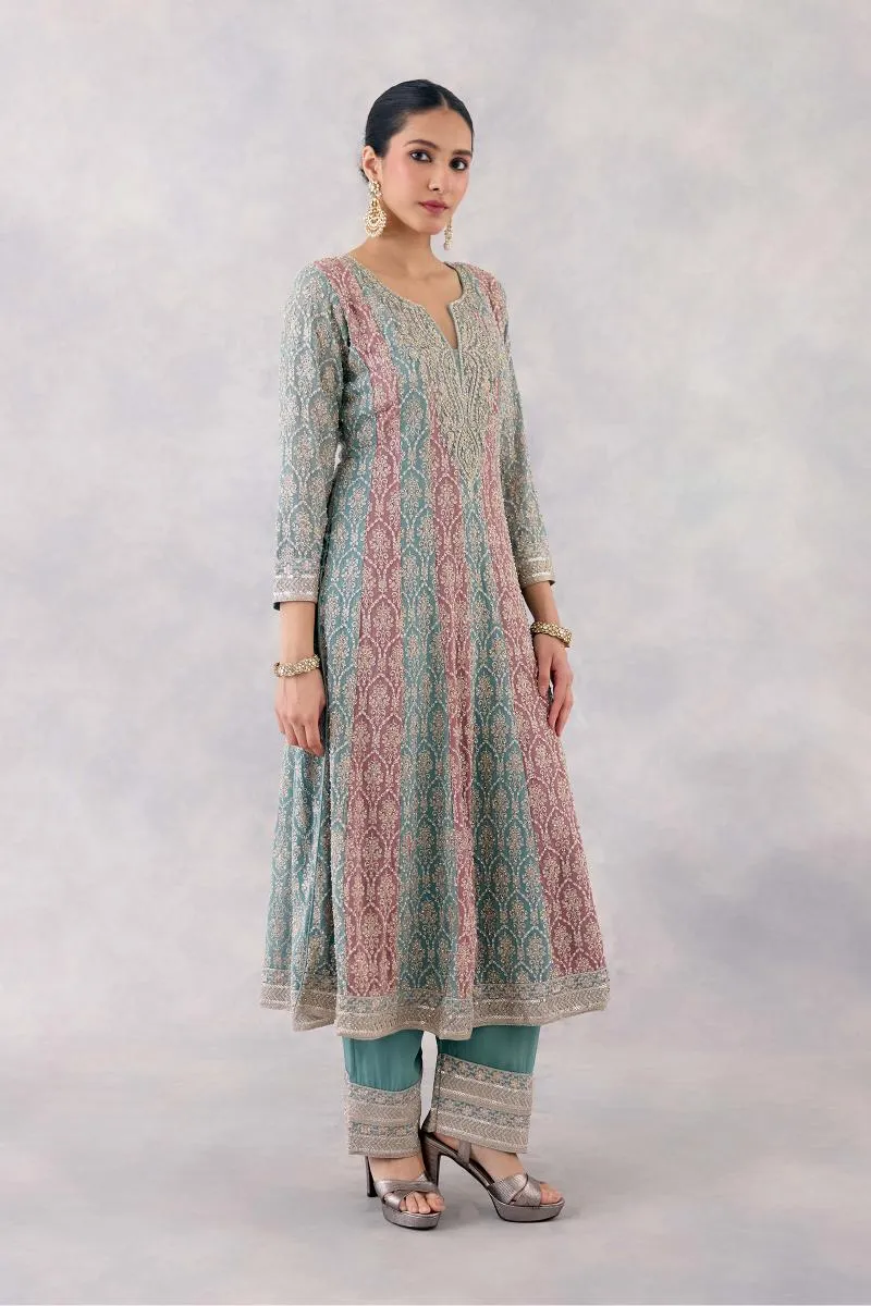 Teal Rose Georgette Anarkali set