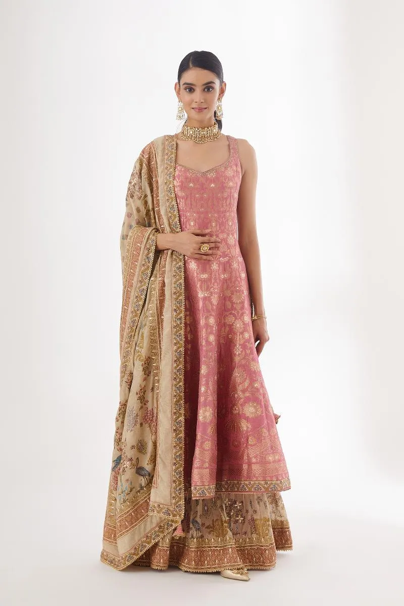 Whether styled with a sheer dupatta adorned with hand-embroidered motifs or paired with a statement choker, a pastel pink bridal Anarkali suit blends tradition with modernity seamlessly. It’s ideal for pre-wedding functions like engagement ceremonies, mehendi, or intimate wedding events under soft floral décor.
