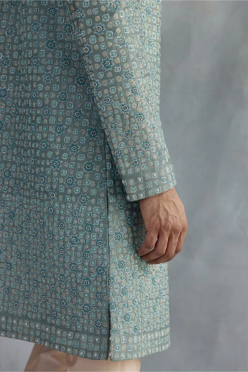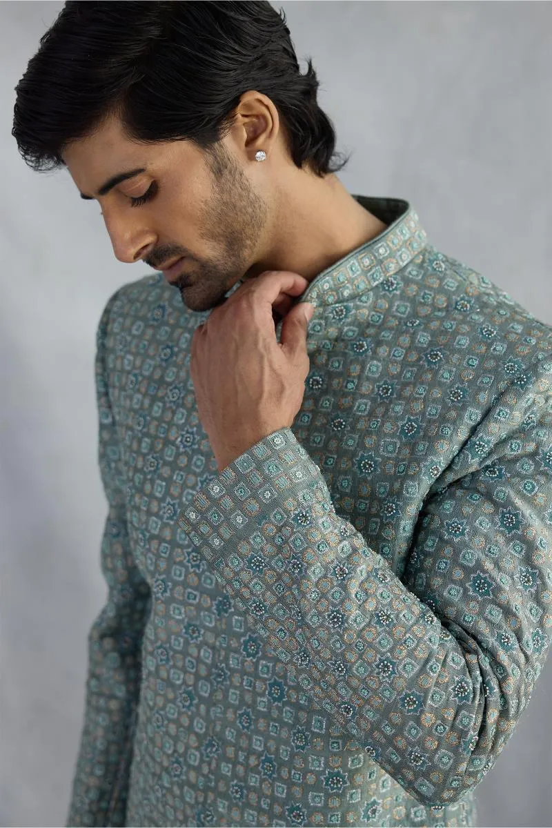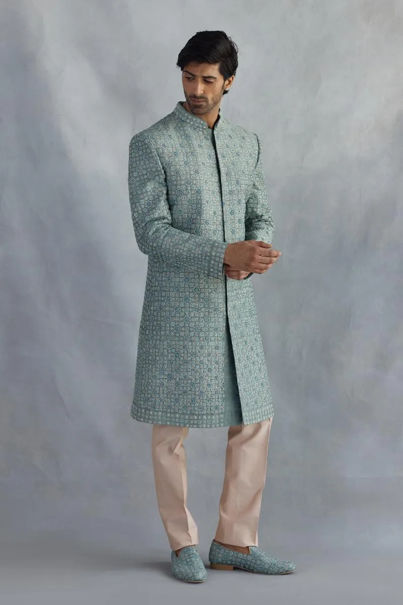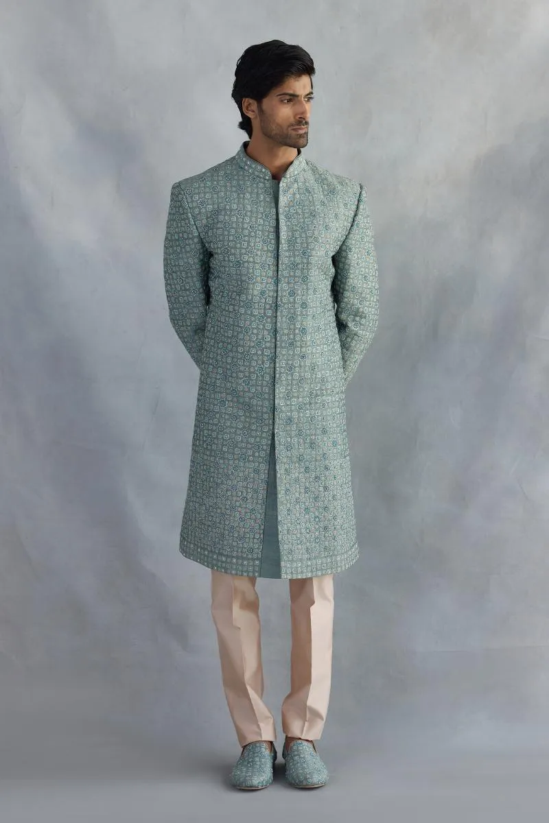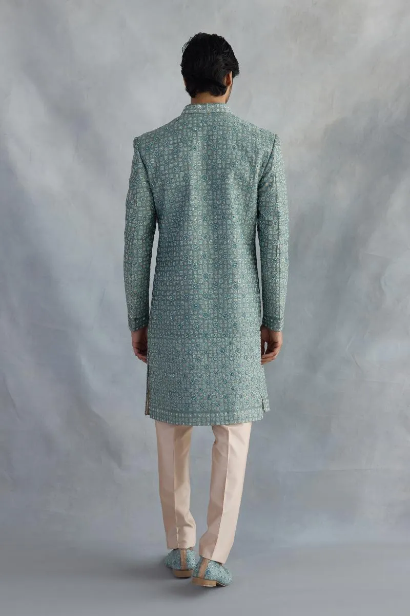 Turquoise Blue Silk Sherwani