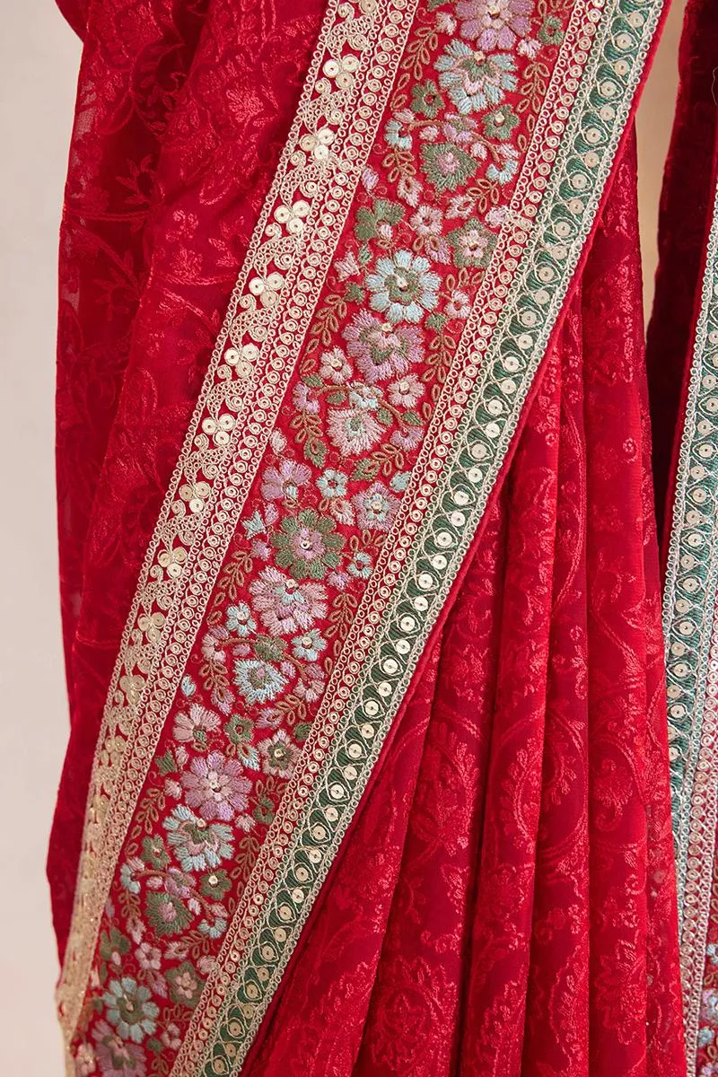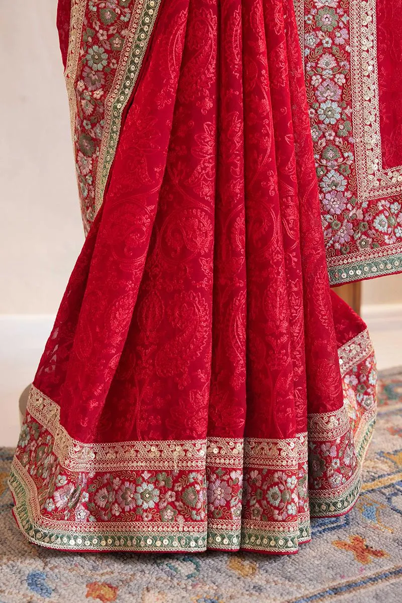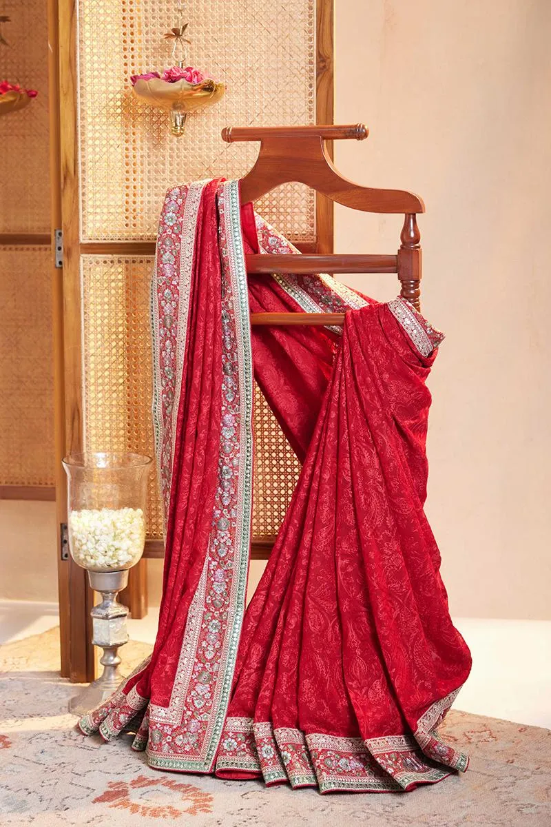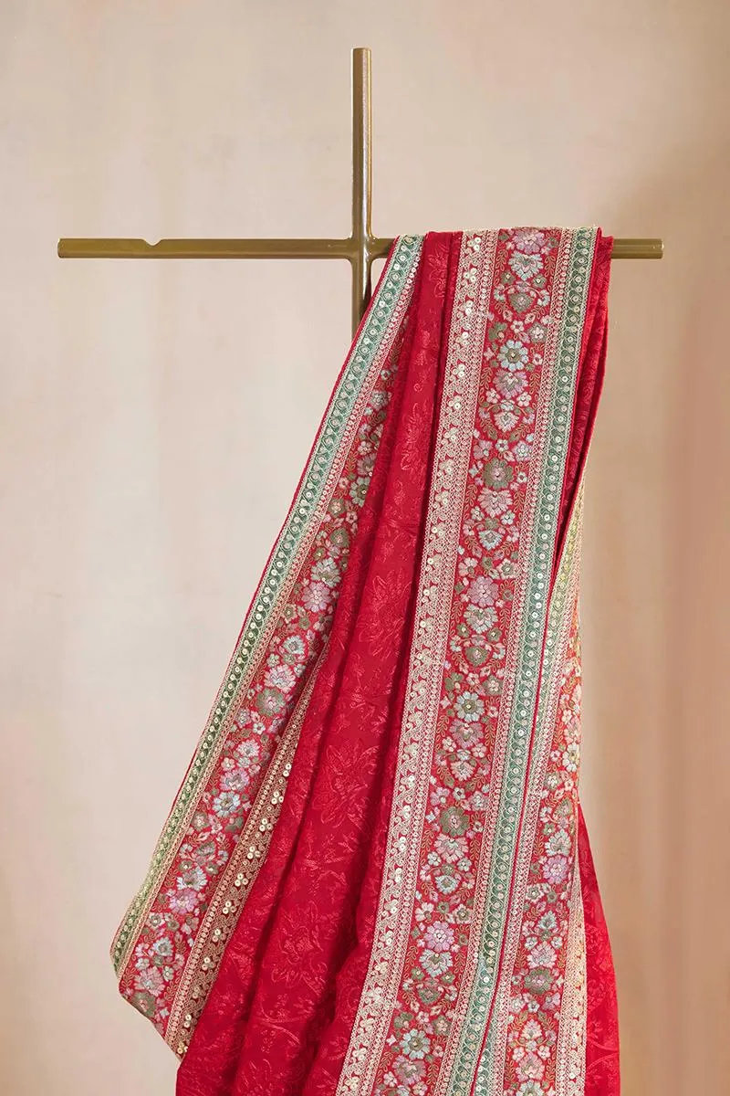 Professional dry-cleaning only. The garment should be kept in Soft Muslin fabric. Do not spray perfume directly on garment. Avoid mothball use. Kindly keep the garment in moderate climate as same of the embroidery material tends to react with the weather change.