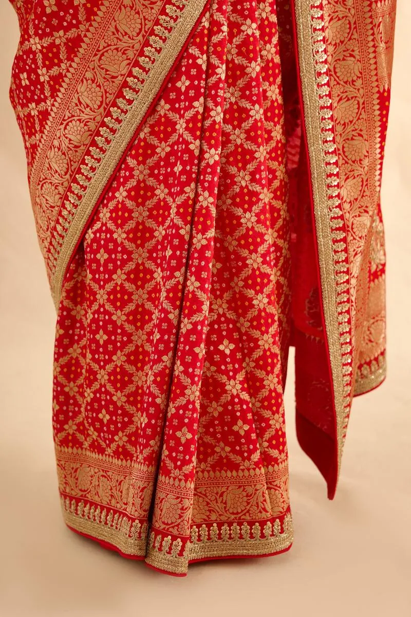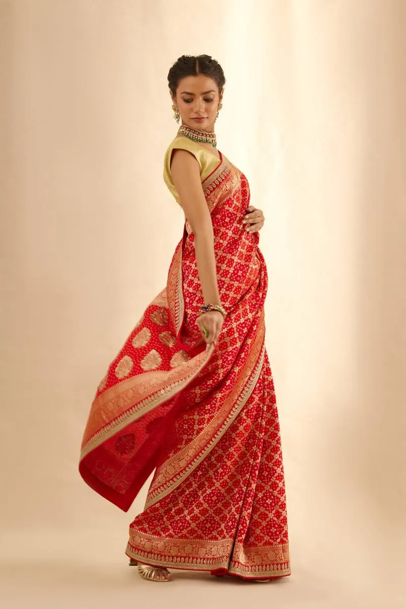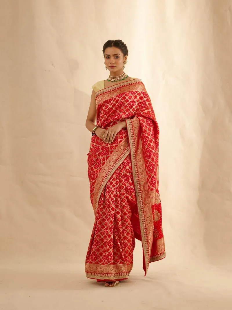 Vermillion Red Bandhani Banarasi Saree