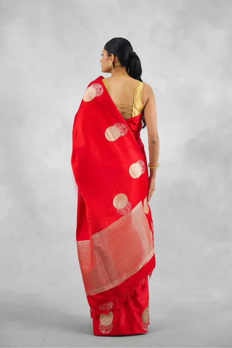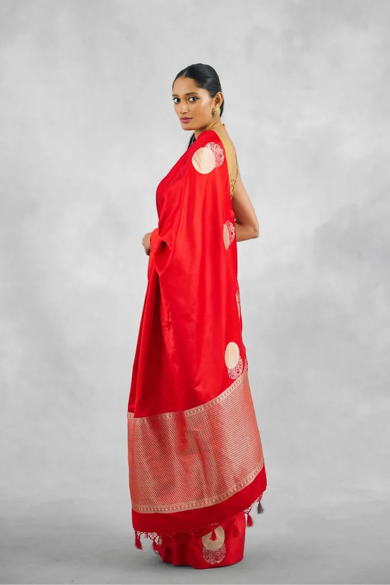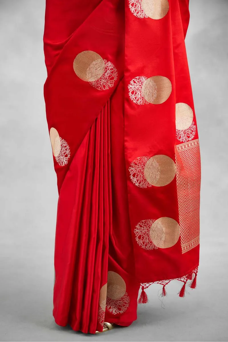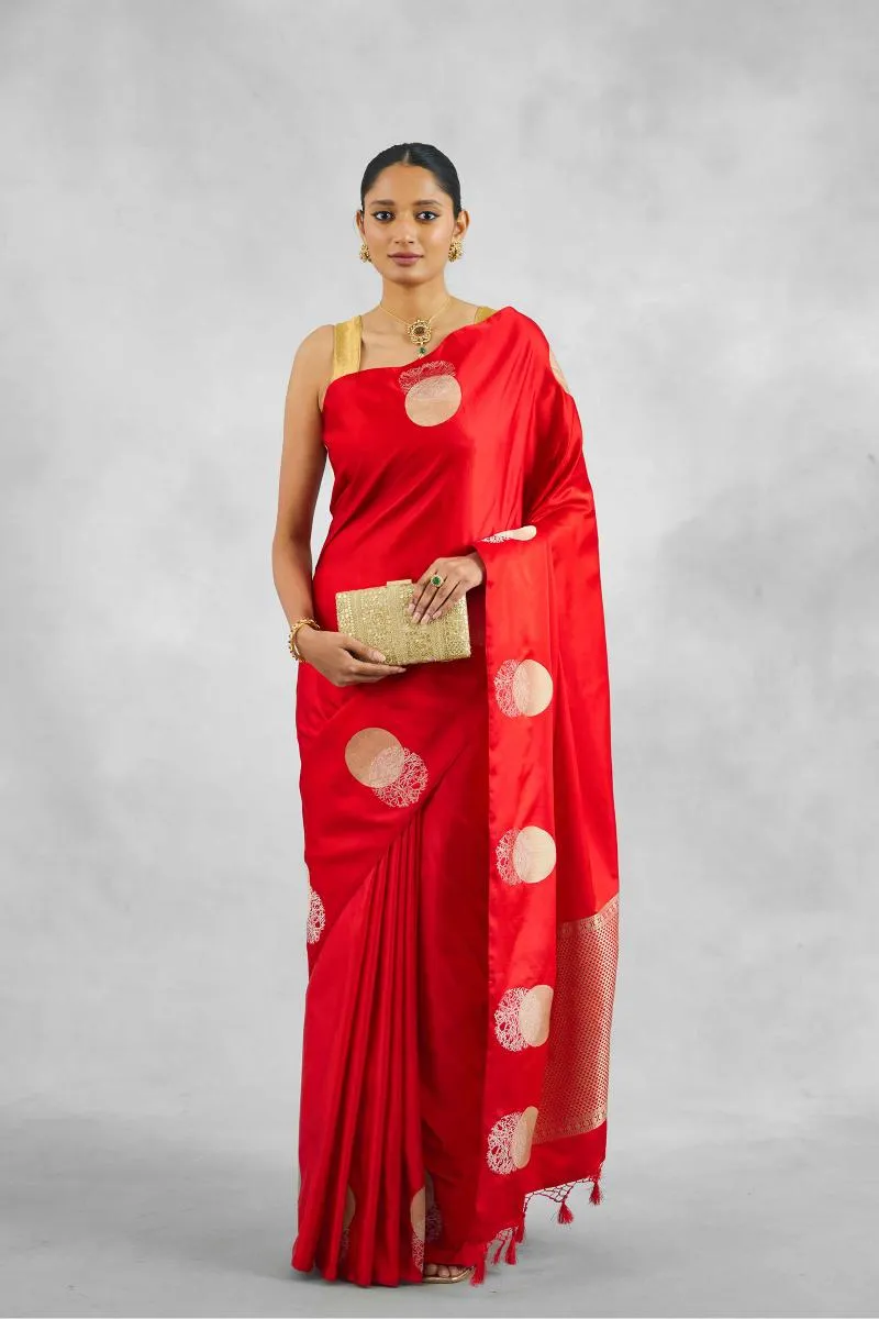 Vermillion Red Satin Silk Saree