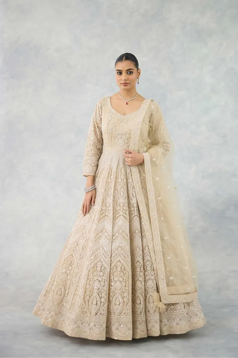 Professional dry-cleaning only. The garment should be kept in Soft Muslin fabric. Do not spray perfume directly on garment. Avoid mothball use. Kindly keep the garment in moderate climate as same of the embroidery material tends to react with the weather change.