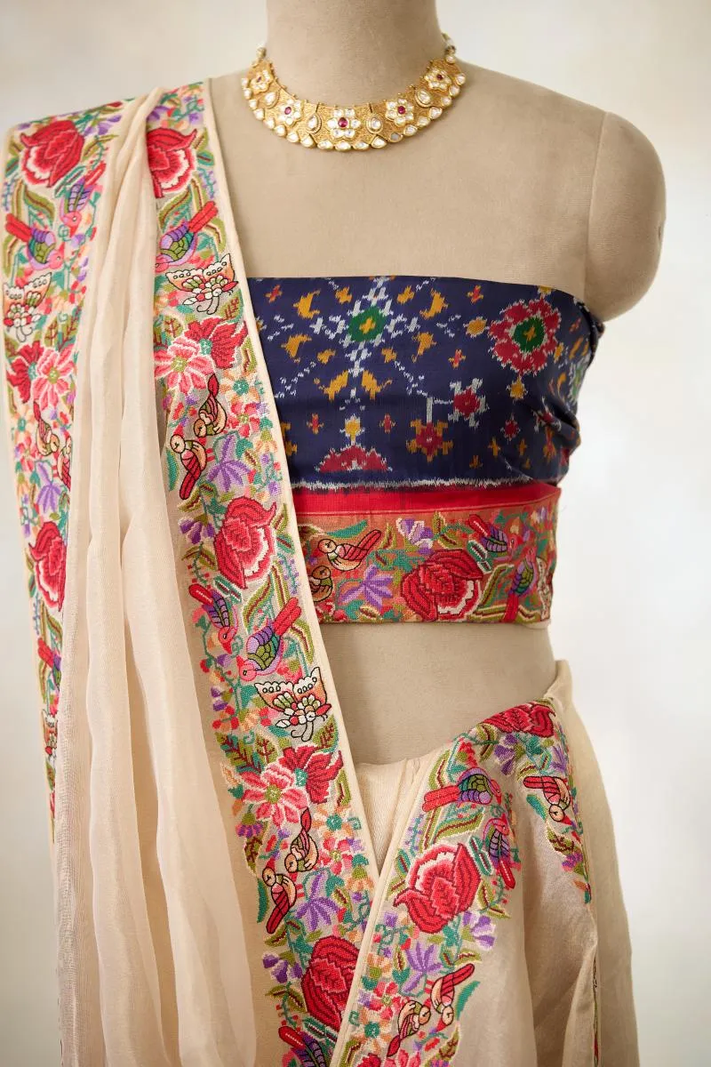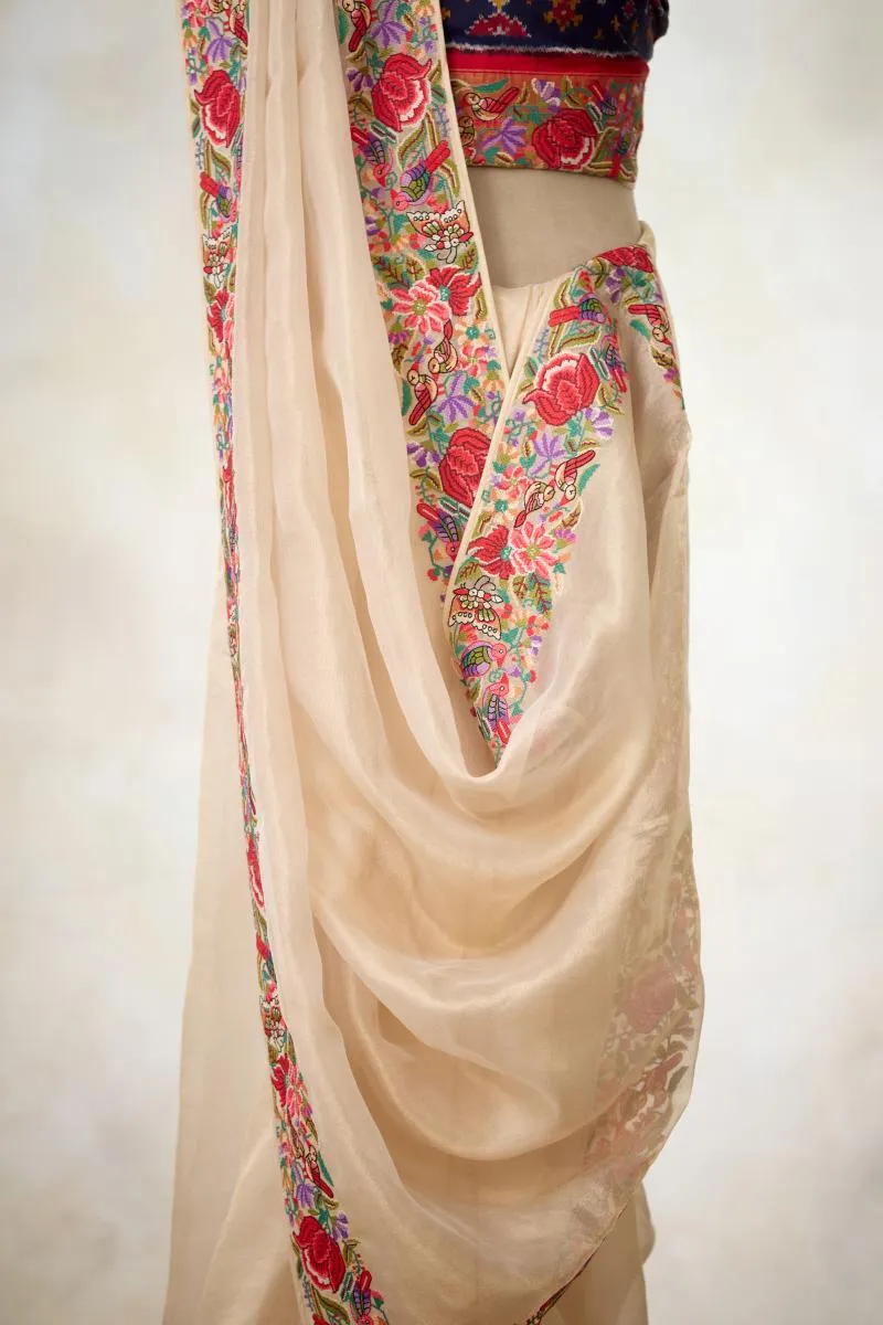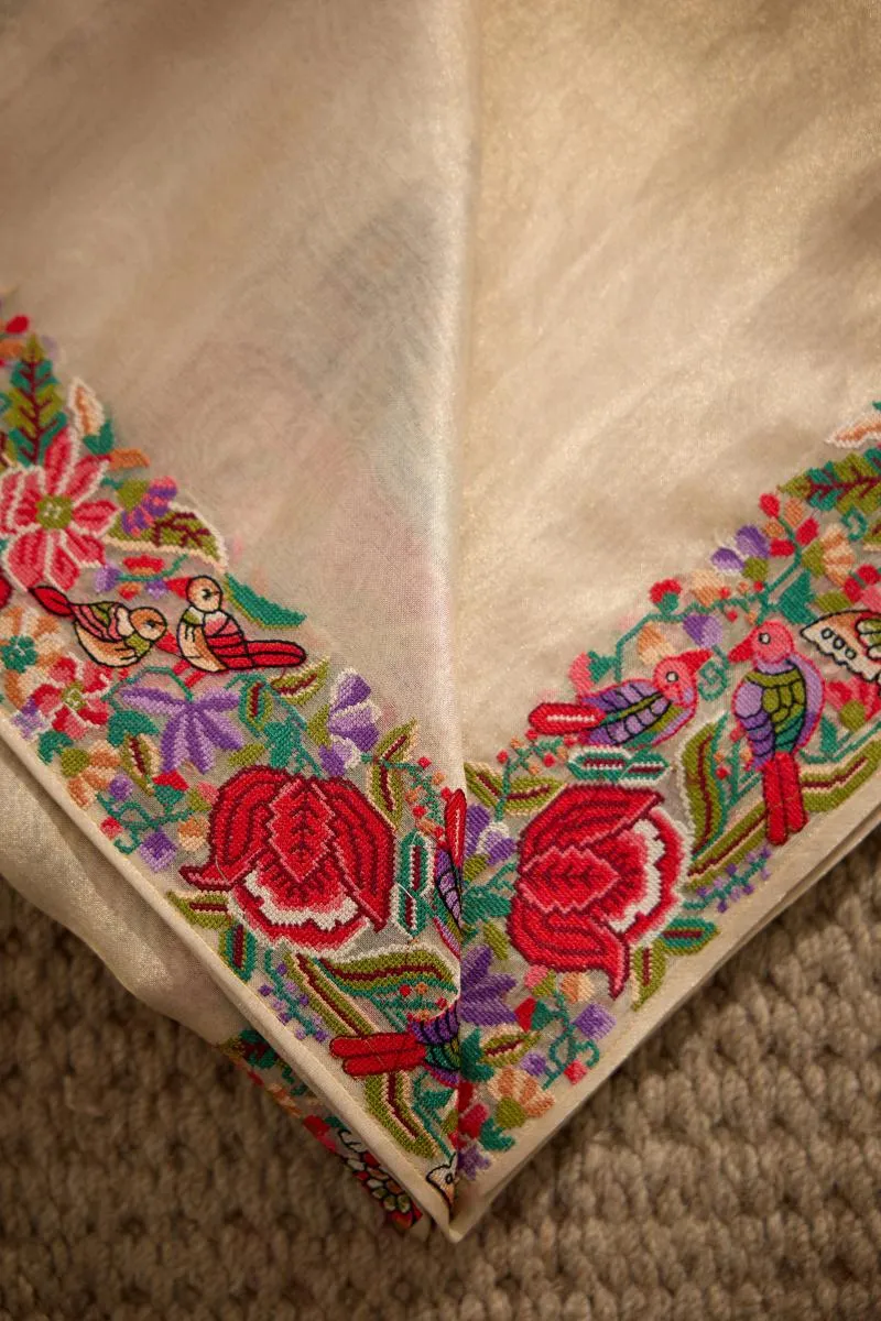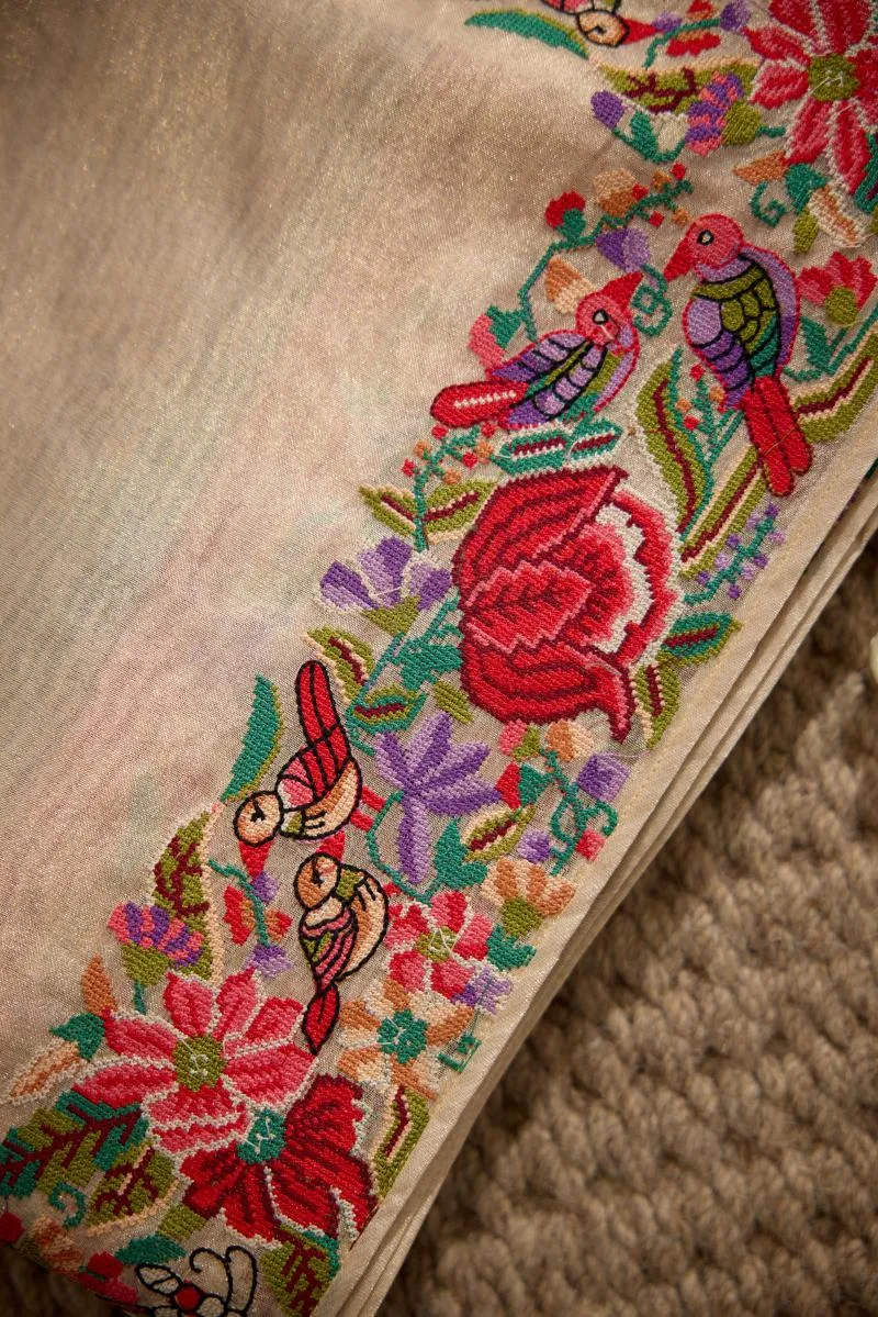 Professional dry-cleaning only. The garment should be kept in Soft Muslin fabric. Do not spray perfume directly on garment. Avoid mothball use. Kindly keep the garment in moderate climate as same of the embroidery material tends to react with the weather change.