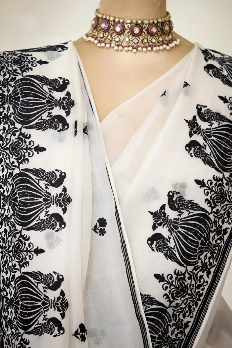 Professional dry-cleaning only. The garment should be kept in Soft Muslin fabric. Do not spray perfume directly on garment. Avoid mothball use. Kindly keep the garment in moderate climate as same of the embroidery material tends to react with the weather change.